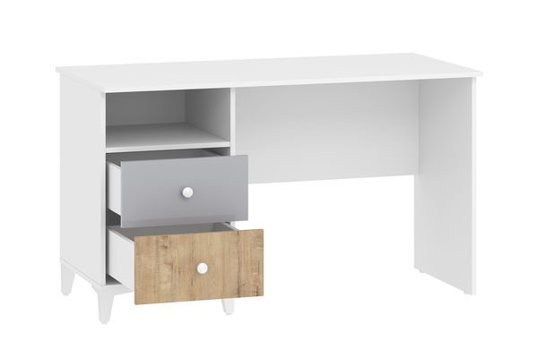 Скругленные ручки на ящиках и дверцах делают мебель безопасной для детей. Открытые полки шкафа-пенала позволят расставить на видных местах игрушки, сувениры, книги и украсить комнату, как нравится ребенку. Письменный стол поможет комфортно делать домашнее задание, рисовать. Кровать с мягким изголовьем способствует безопасному и комфортному отдыху. Прикроватные тумбочки с двумя выдвижными ящиками - завершающий штрих в оформлении комнаты