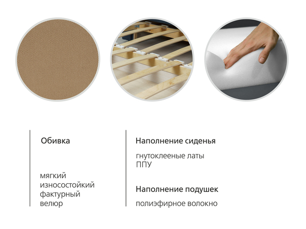 - Тип ткани: практичный мягкий на ощупь велюр с мелкой фактурой "ромбик", легким блеском и средневыраженным "пальчиковым эффектом"