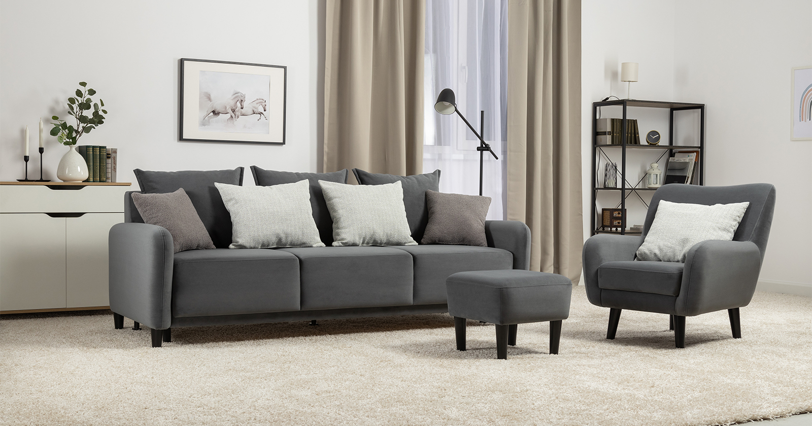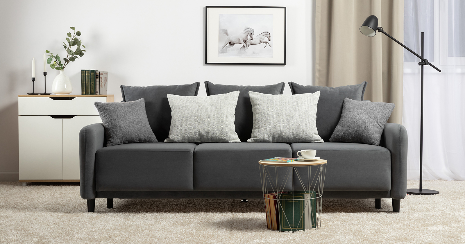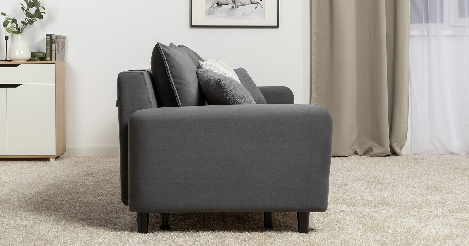 Диван-кровать прямой Дакота ТД 586 велюр Vendetta 11 графитовый серый, Albus Zemin 1735 z1 col 2 белый, Romeo 06
