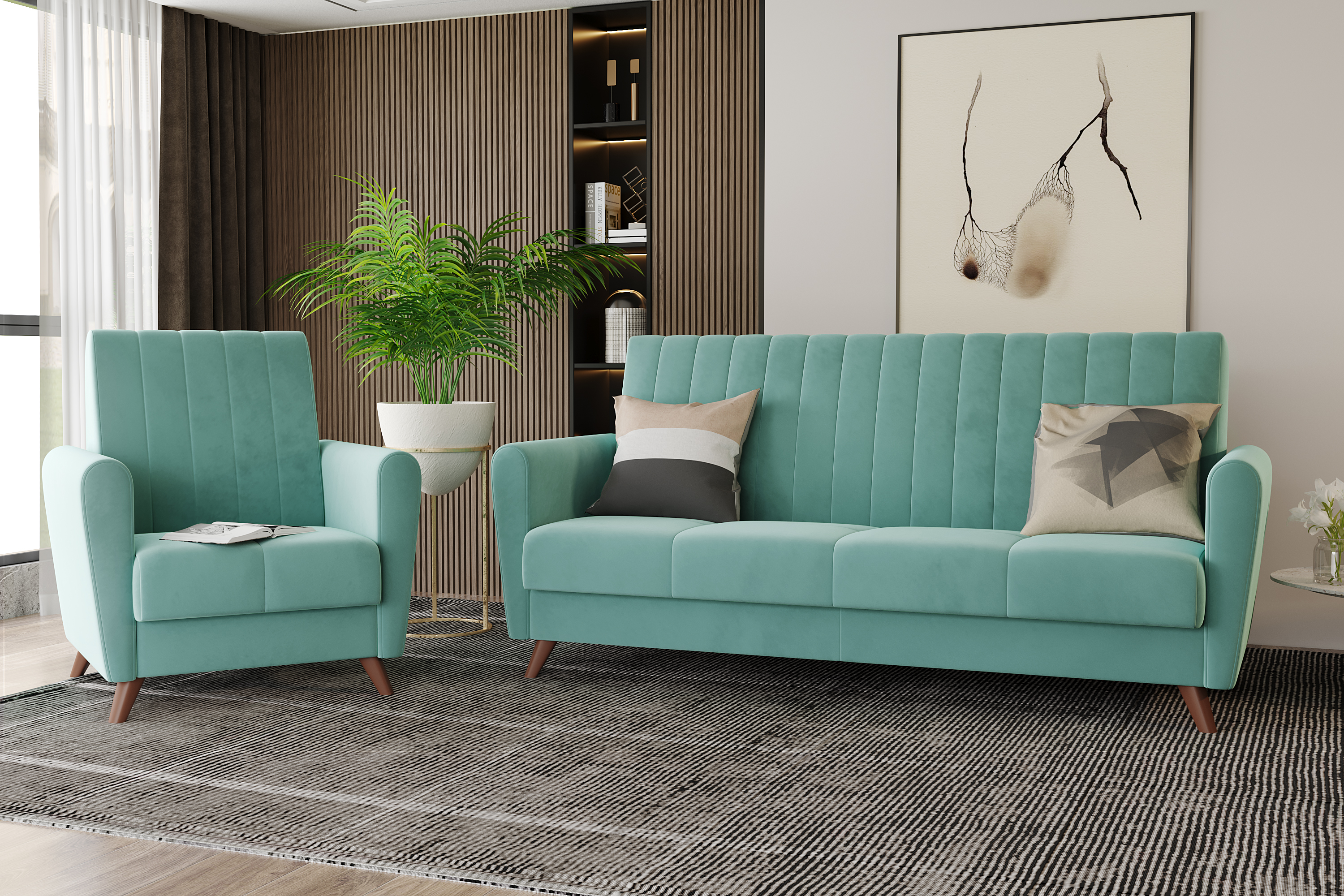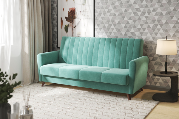 Диван-кровать прямой Монако велюр Ультра минт светло-зеленый с пружинным блоком (высота опор - 120мм)