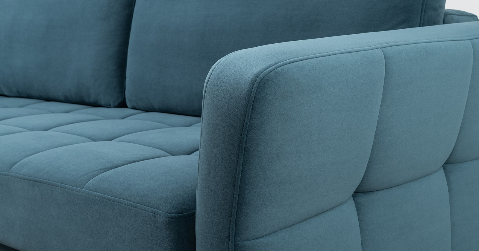 Ровная отстрочка по всему периметру сидения и стежка? создающая эффект пышности выделенных форм. Подлокотники прямые с изгибом в наружные стороны, с выраженной стежкой по лицевой стороне. Стежка на посадочной части дивана.