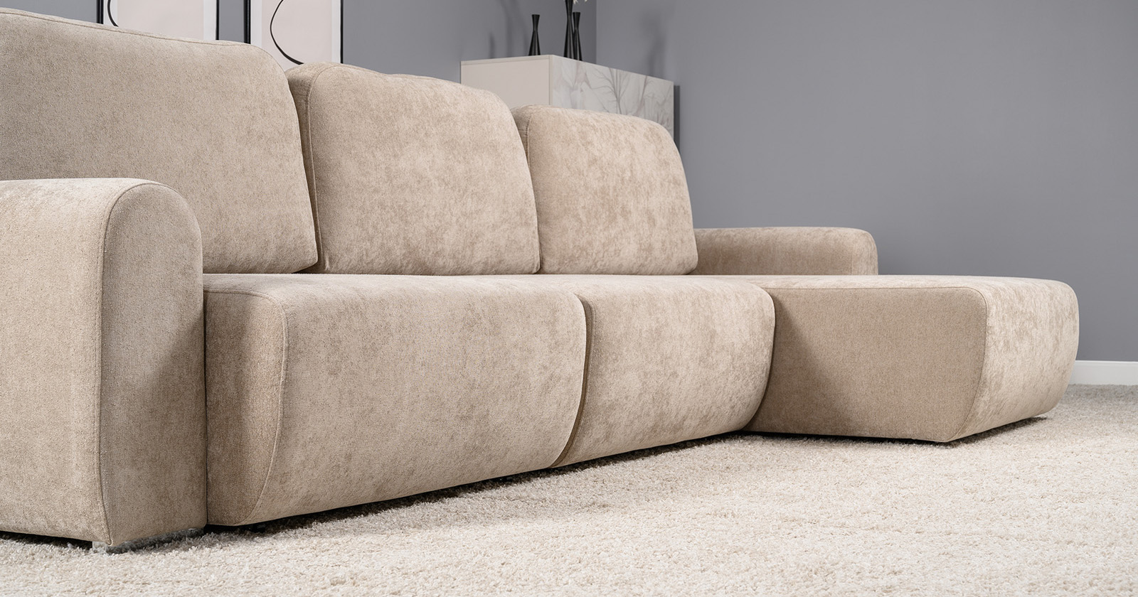 Диван-кровать угловой Тэдди 1502 композиция 2, букле Pique 006 бежевый, модульная система, сборка на любую сторону