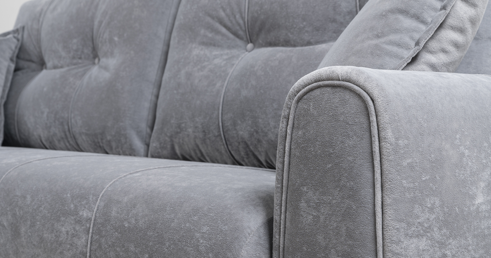 Выполнен в модном мягком велюре ROMANCE оригинальной фактуры. Ткань легко чистится, устойчива к зацепам, обладает повышенной износостойкостью. Благодаря особой технологии гладкого крашения Frozen Flower на поверхности ткани присутствует легкий краш–эффект, подчеркивающий невероятно мягкую фактуру ткани.