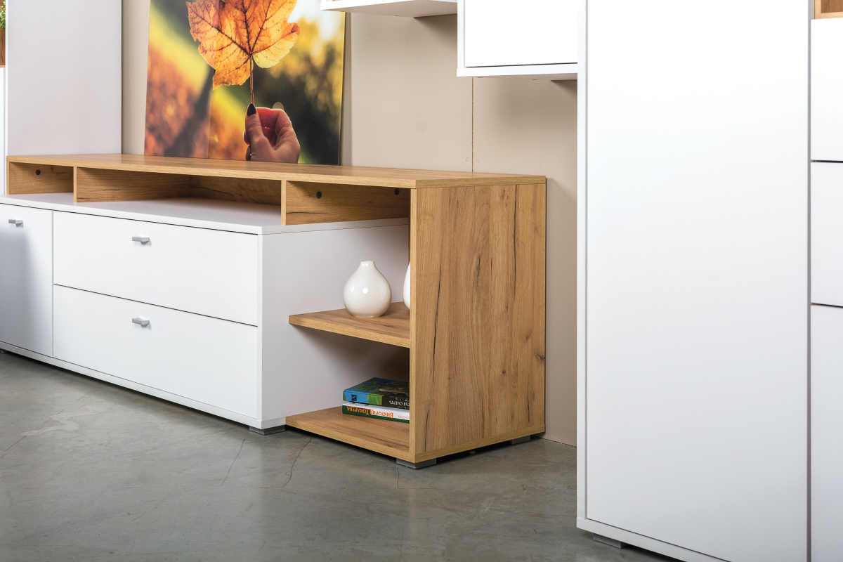 Гостиная Альба композиция 1 дуб золотой CRAFT, белый премиум, без подсветки