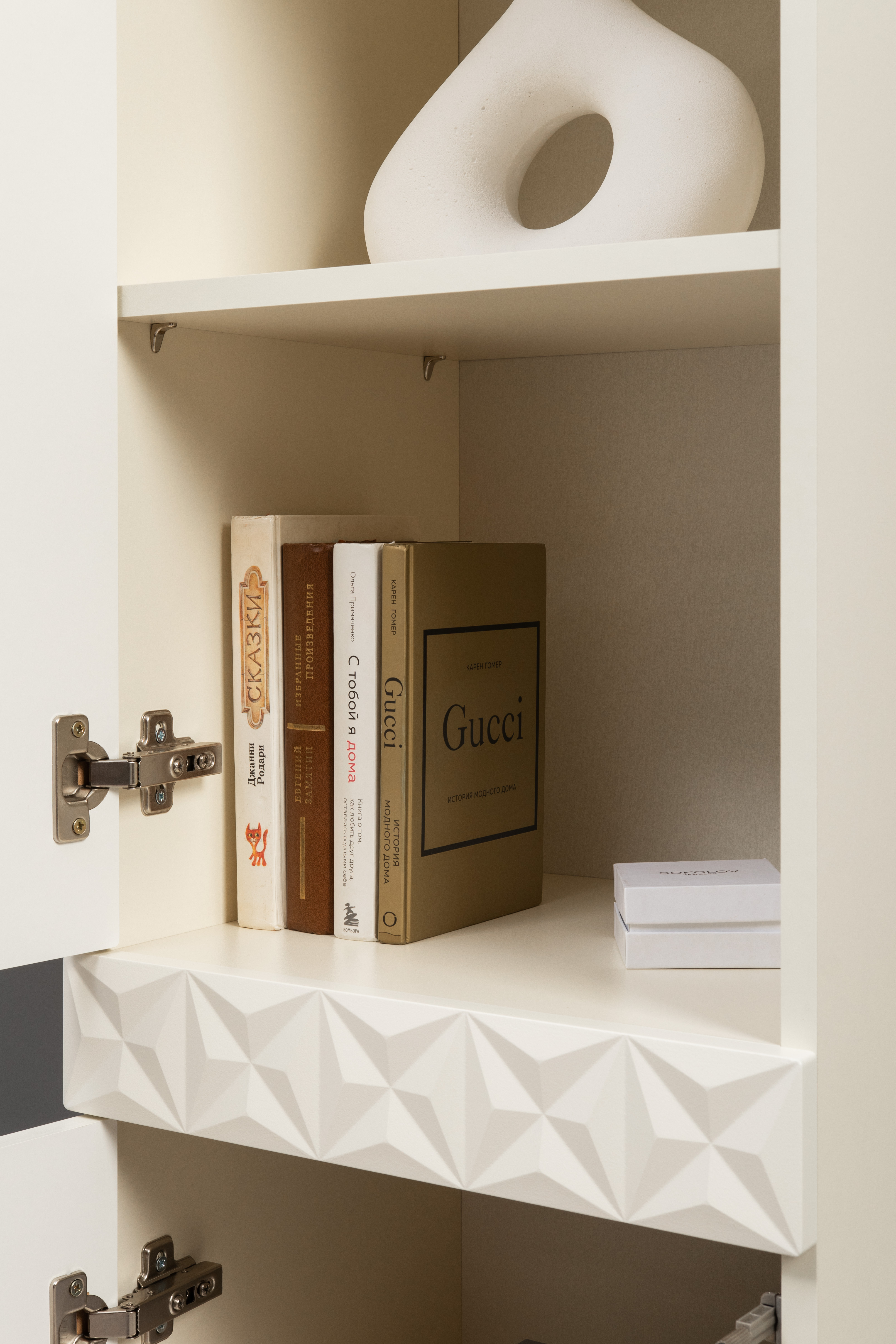 Шкаф навесной Марион 16.334 слоновая кость С341 PE, слоновая кость 6898 ПВХ (собирается на любую сторону)