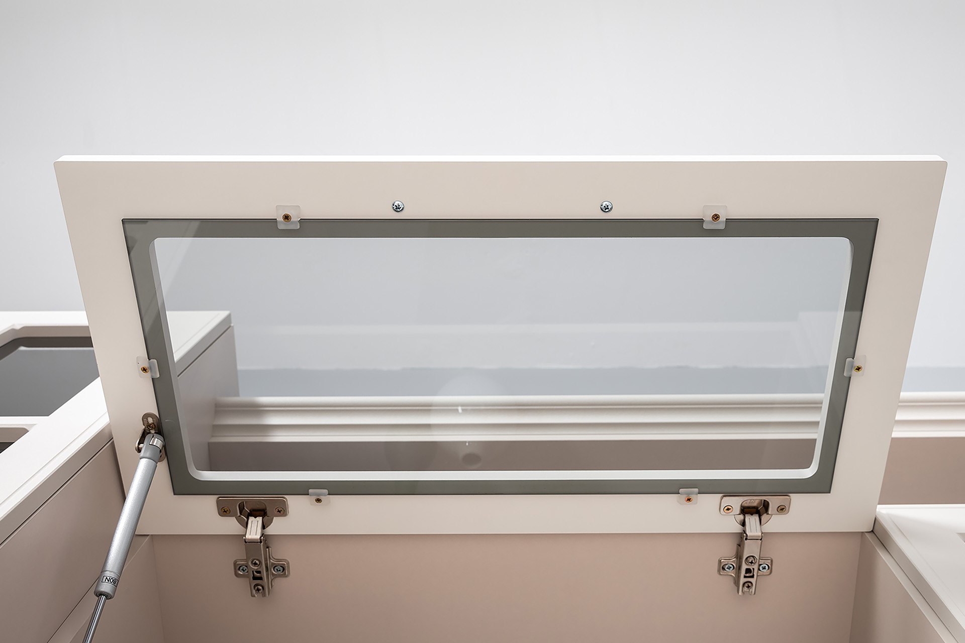Петли с доводчиками, полное выдвижение ящиков, выдвижная штанга в шкафу для одежды и съемные полки делают использование максимально комфортным.
