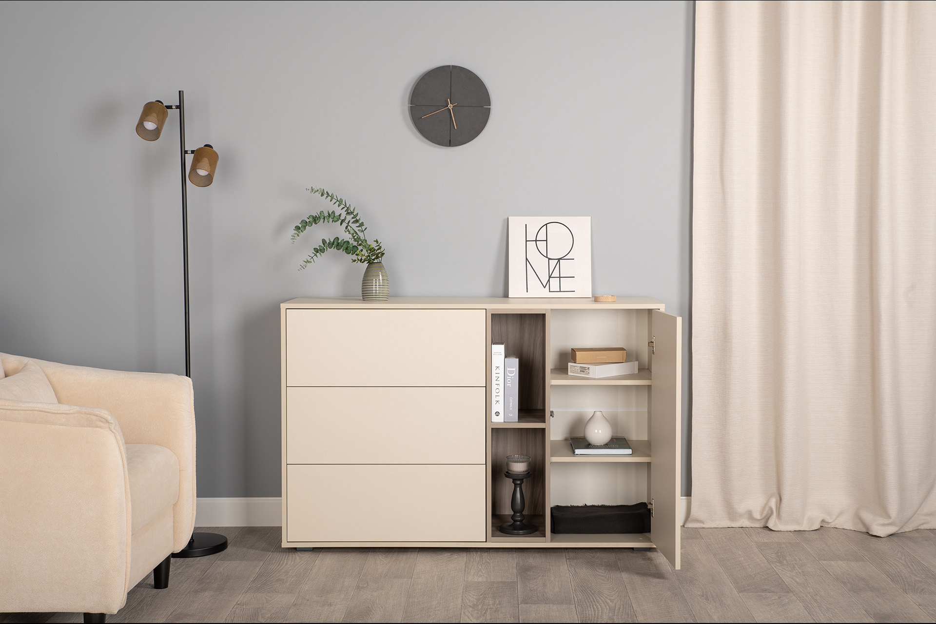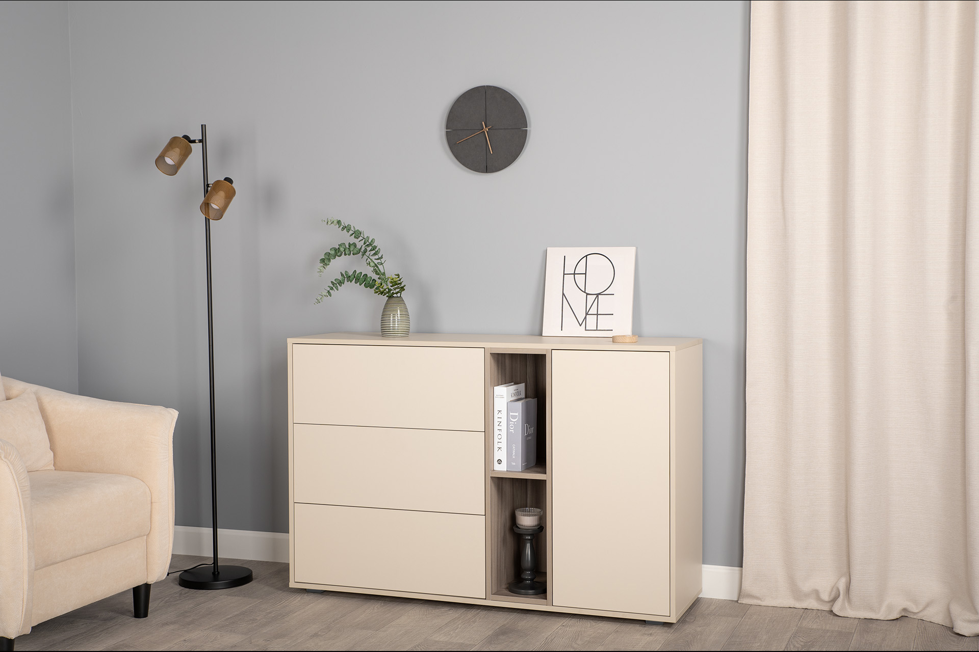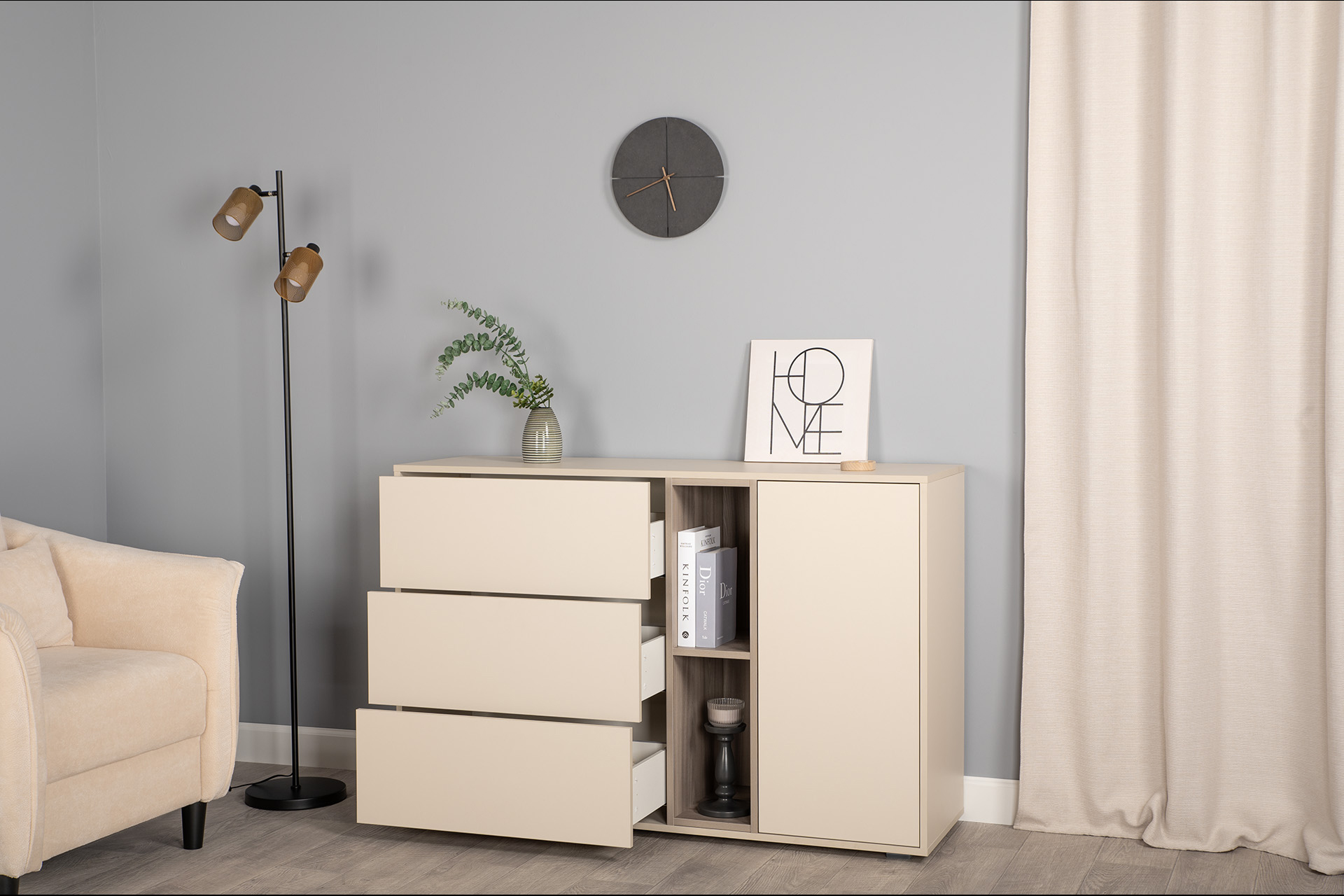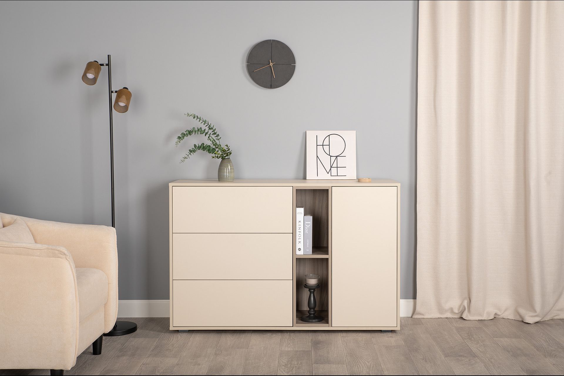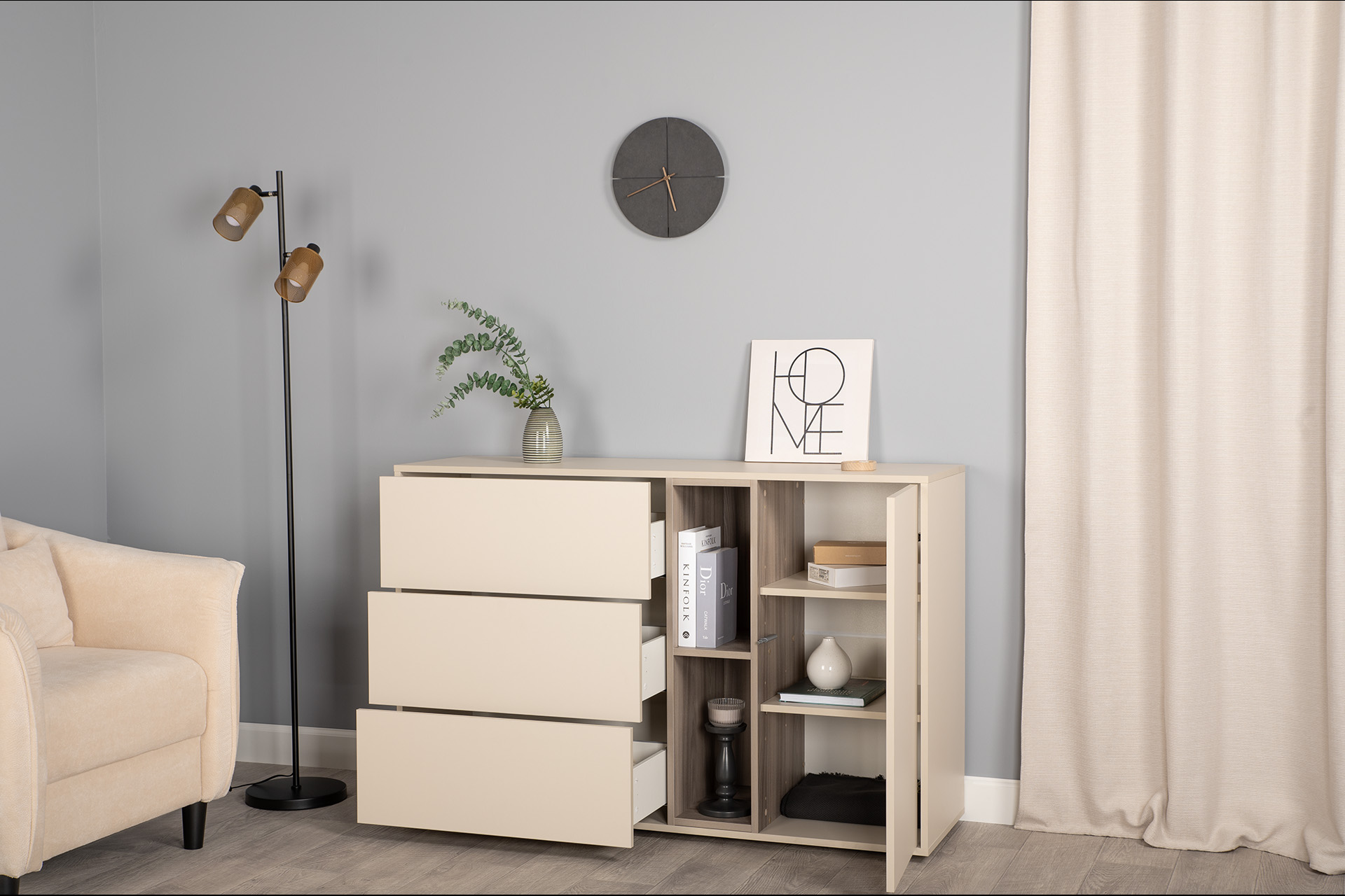 Комод Тайл 16.237 сатин 7045 SU, эмили блаш U9135, белый PE шагрень, собирается на любую сторону