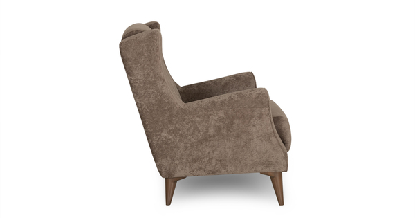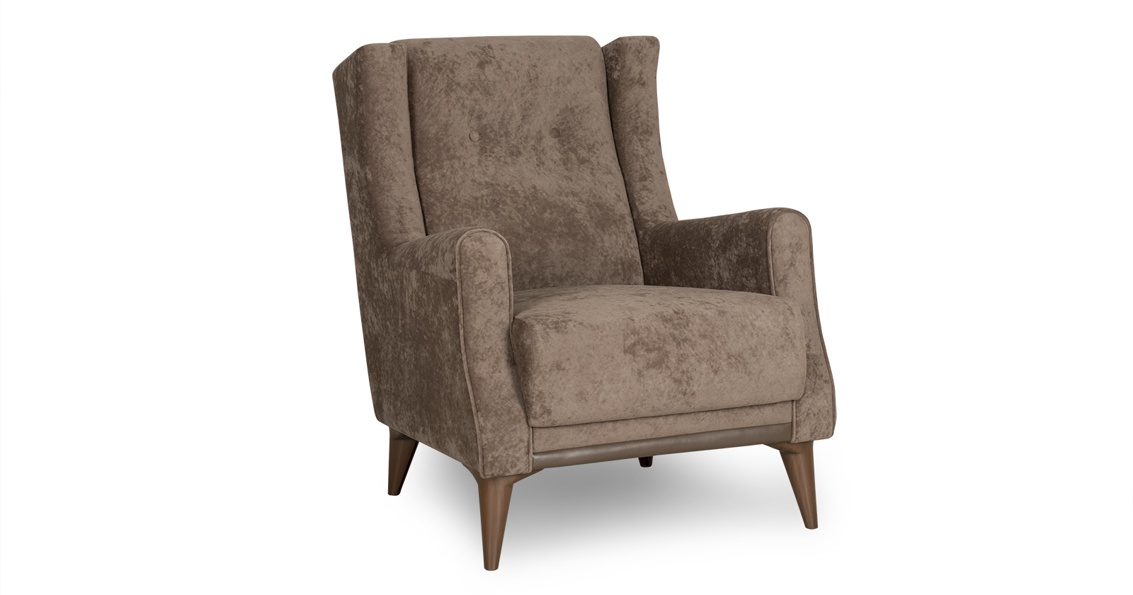 Декоративный кант из основной ткани по переднему торцу подлокотника; Утяжка спинки на 2 декоративные пуговицы из основного материала; Декоративный элемент царги из материала-компаньона.