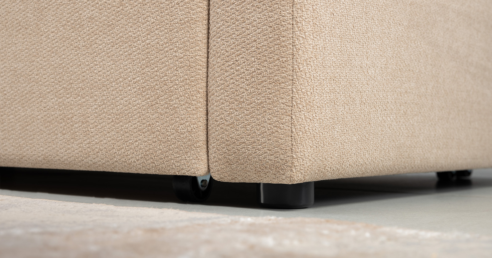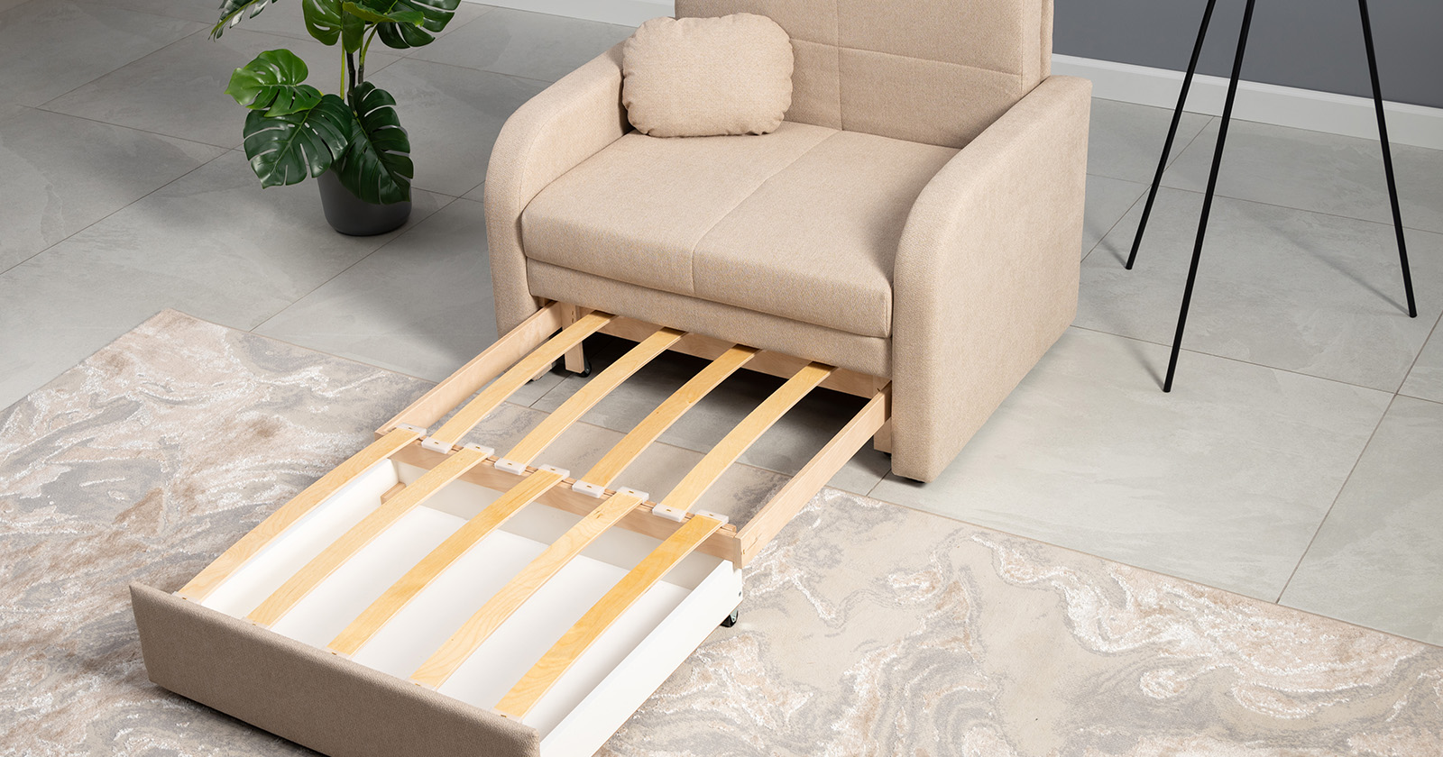 Коллекция выполнена в современном минималистичном стиле с мягкой обивкой из износостойкой ткани и декоративной стежкой, подчеркивающей геометрию форм. Механизм трансформации обеспечивает дополнительное спальное место, делая мебель не только эстетичной, но и максимально функциональной для небольших пространств.
