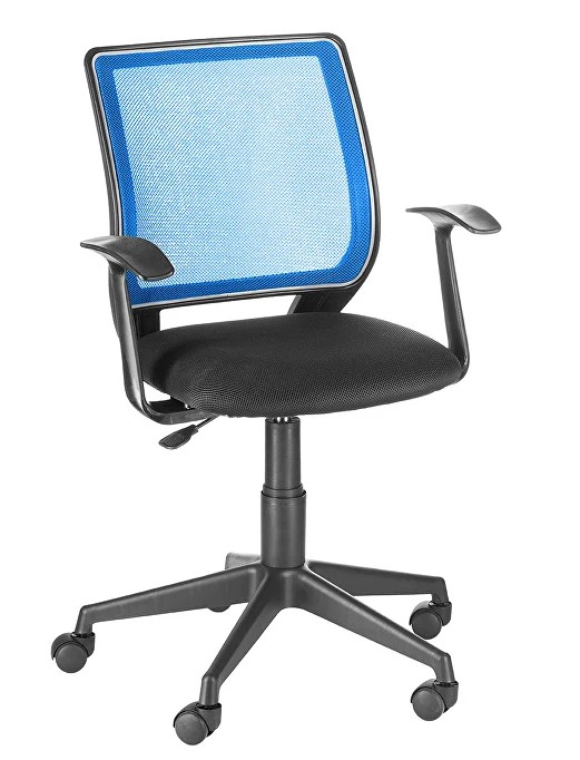 Кресло на колесах Эксперт Т эрго черное сидение TW,спинка синий, подлокотник пластик Т образный, крестовина пластик, без качания