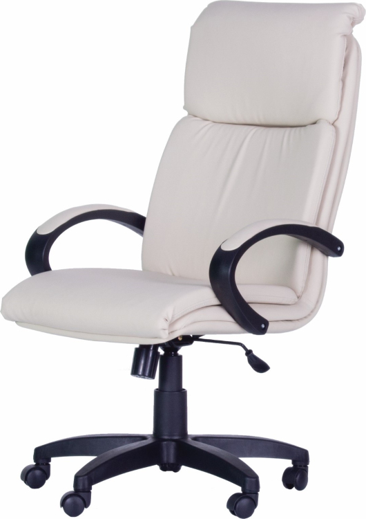 Кресло на колесах Надир ультра кожзам бежевый крестовина пластик, подлокотники пластик, механизм качания