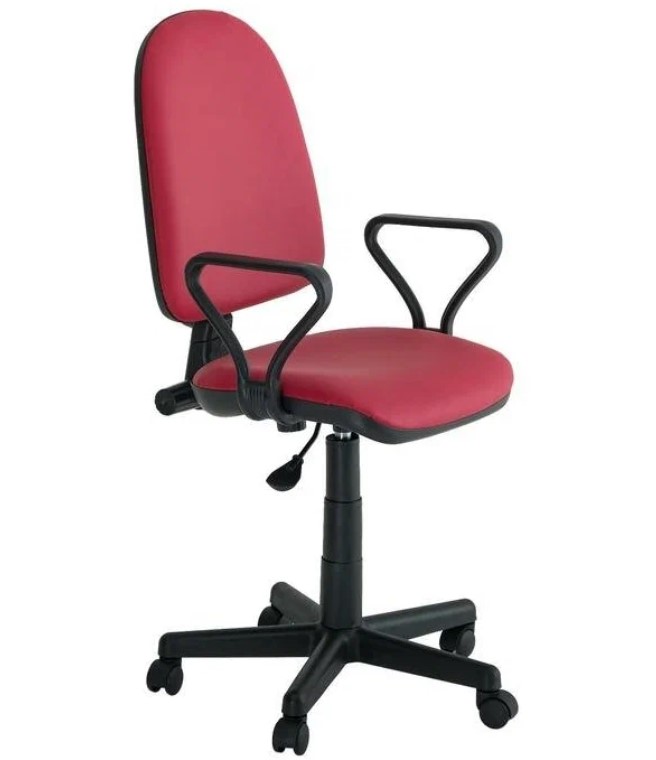 Кресло Престиж Самба обивка кожзам бордо, подлокотники пластик, крестовина пластик, механизм отклонения спинки