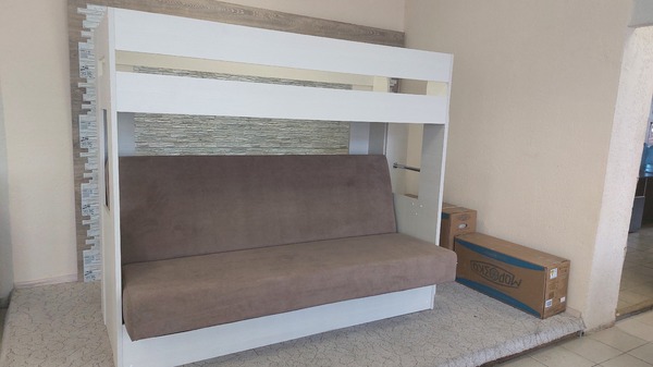 Двухъярусная кровать с диваном на первом уровне очень функциональна, удобно разместится в любом интерьере.