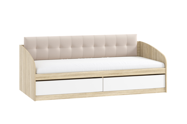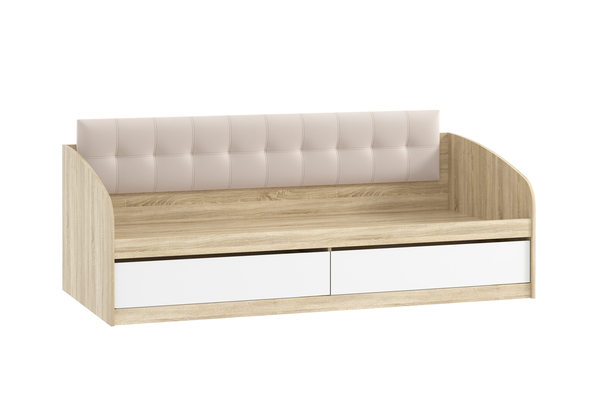 Кровать детская Фанк НМ 041.50 дуб сонома, белый с мягкой спинкой Дабл велутто 16 велюр бежевый