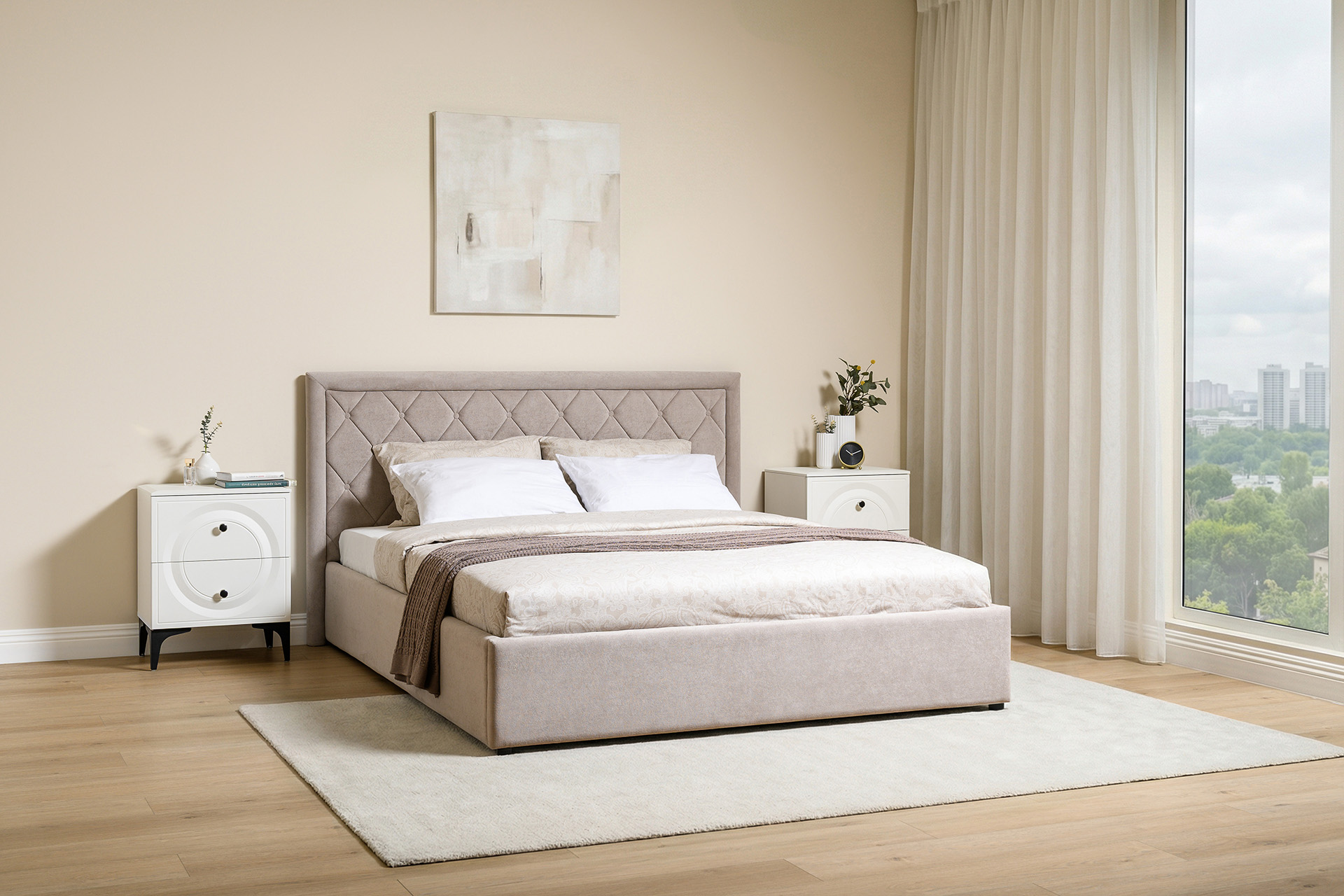 Кровать Марион — это идеальное сочетание стиля и комфорта. Элегантное изголовье оформлено стежкой в виде классической каретной стяжки, украшенной декоративными пуговицами, что придаёт изделию выразительный и утончённый вид. По всему периметру кровати проходит аккуратный валик, подчеркивающий геометрию и завершённость формы.