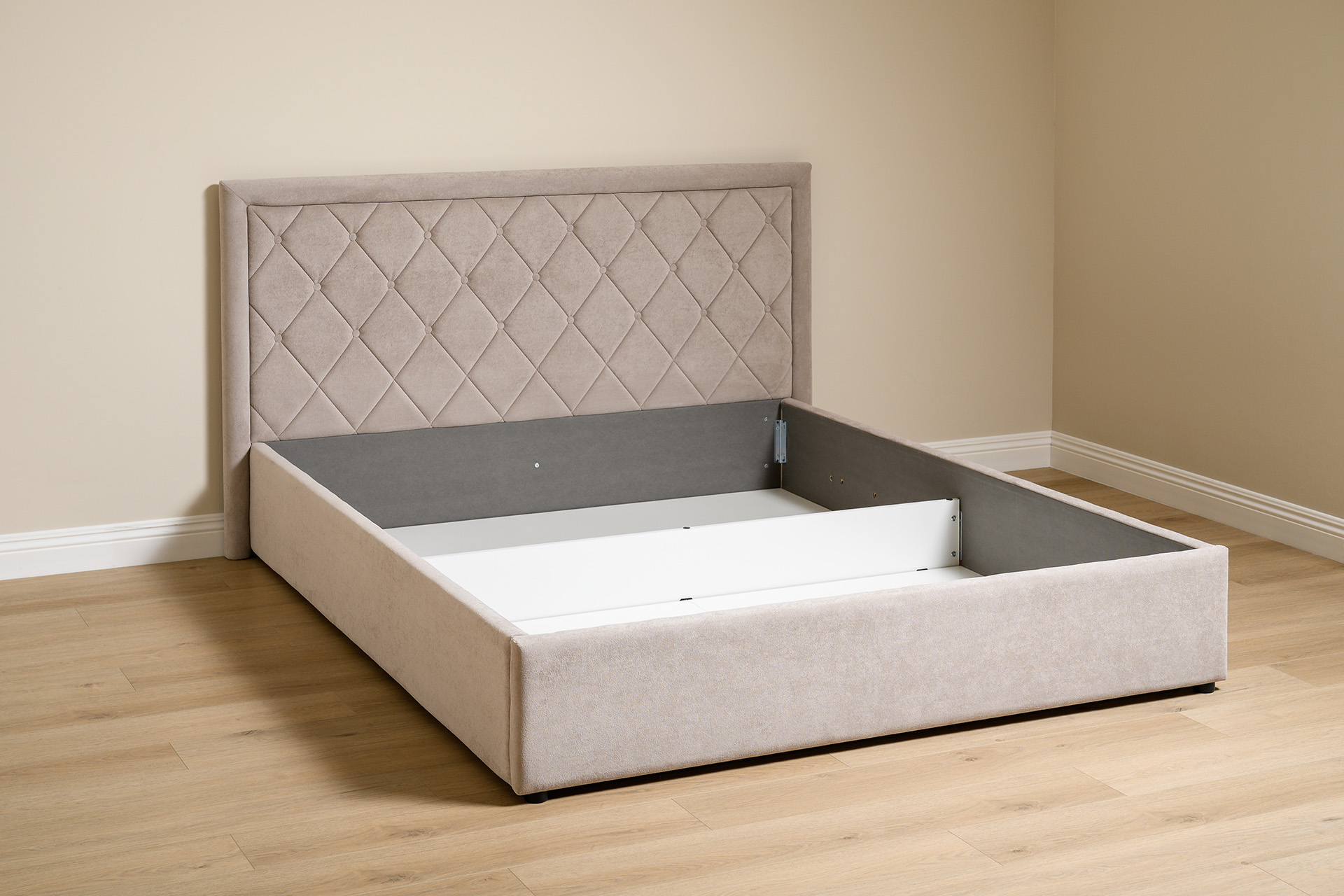 Кровать Марион 160 велюр OCEAN 005 темно-бежевый с ортопедическим основанием и подъемным механизмом (спальное место 160 х 200)
