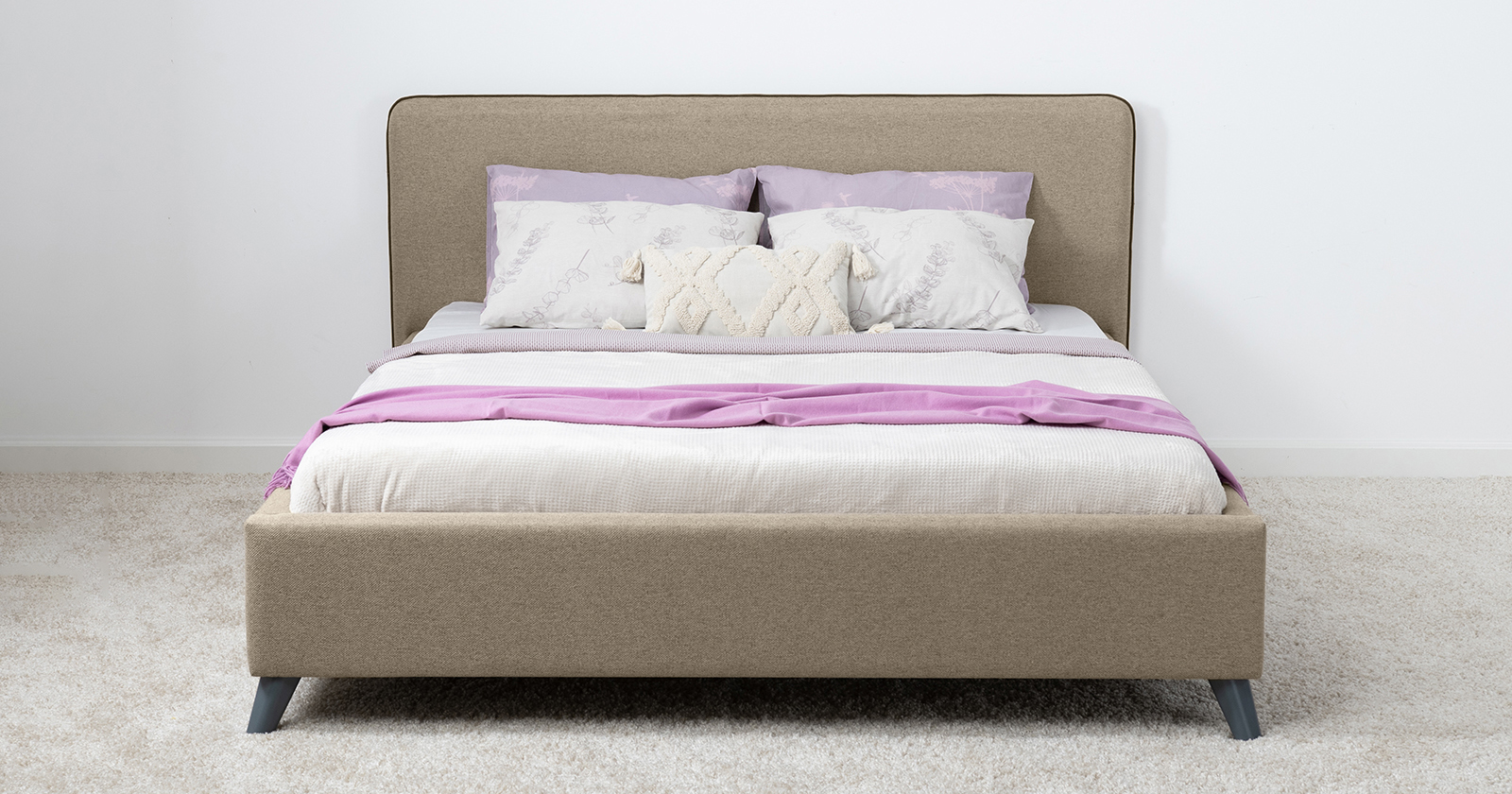 Лаконичный дизайн, гладкая и приятная на ощупь рогожка, широкий выбор пастельных оттенков, высокие опоры — модная кровать МИА порадует сторонников скандинавского стиля.