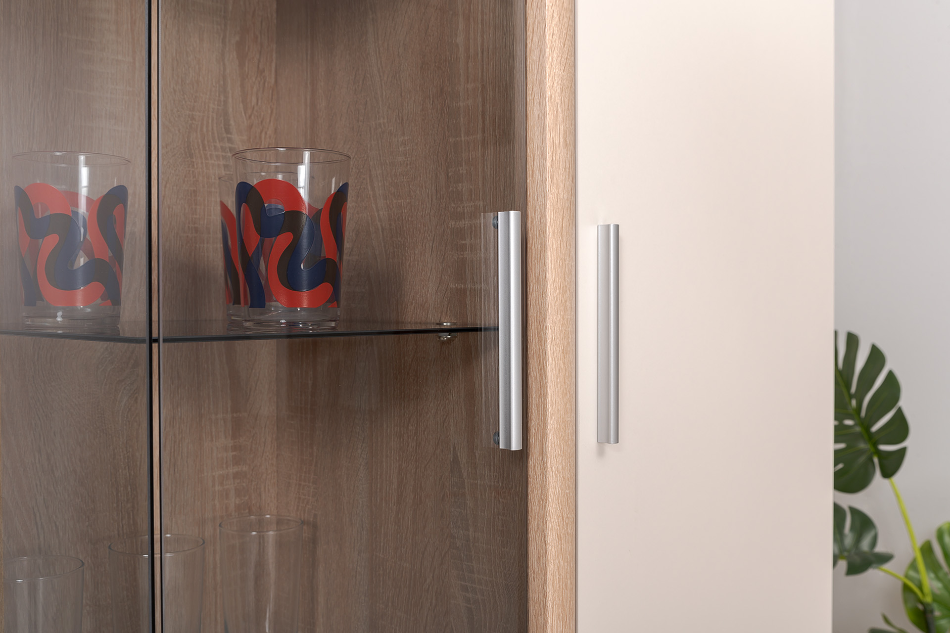 Лаконичные ручки выполнены из алюминиевого профиля. Матовое покрытие обеспечивает надёжный захват и долговечность.