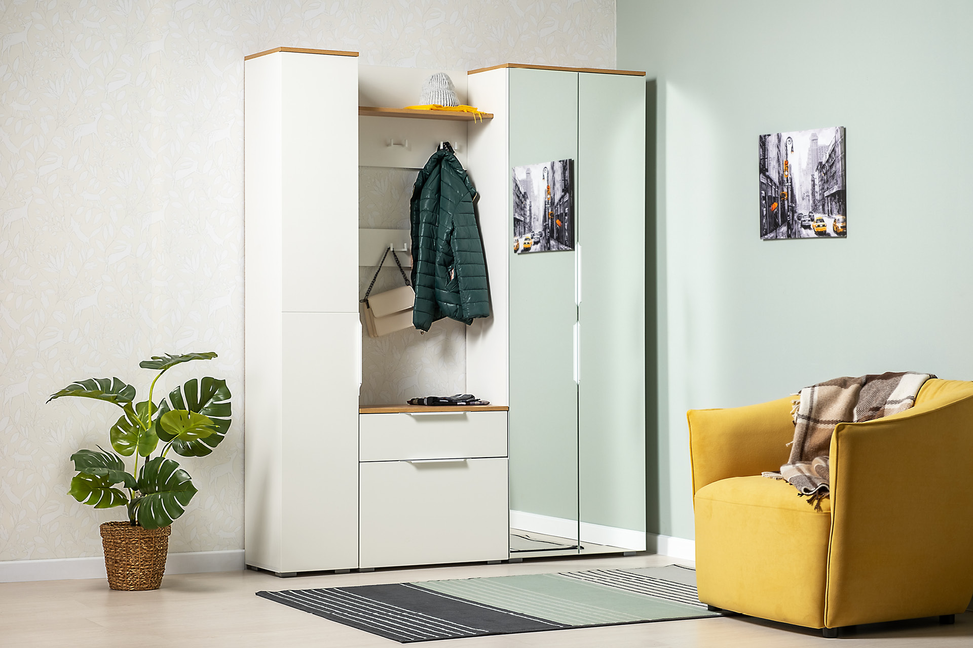 Прихожая Октава композиция 1 белый PE шагрень, дуб золотой CRAFT, белая шагрень 4101 ПВХ (собирается на любую сторону)