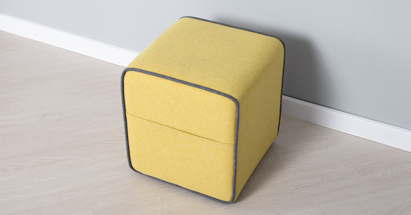 Боковые карманы на противоположных сторонах пуфа, два противоположных торца оформлены контрастным кантом