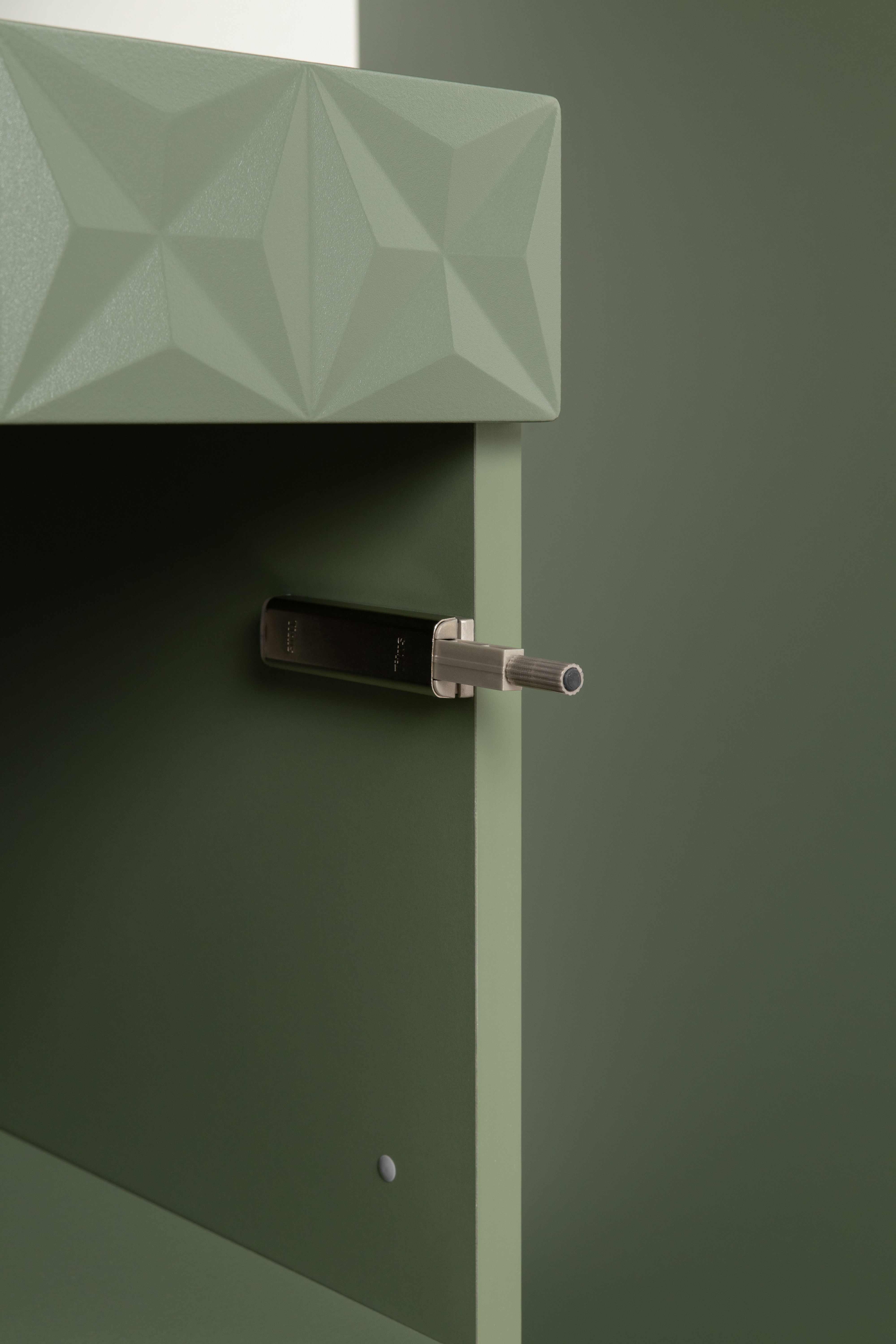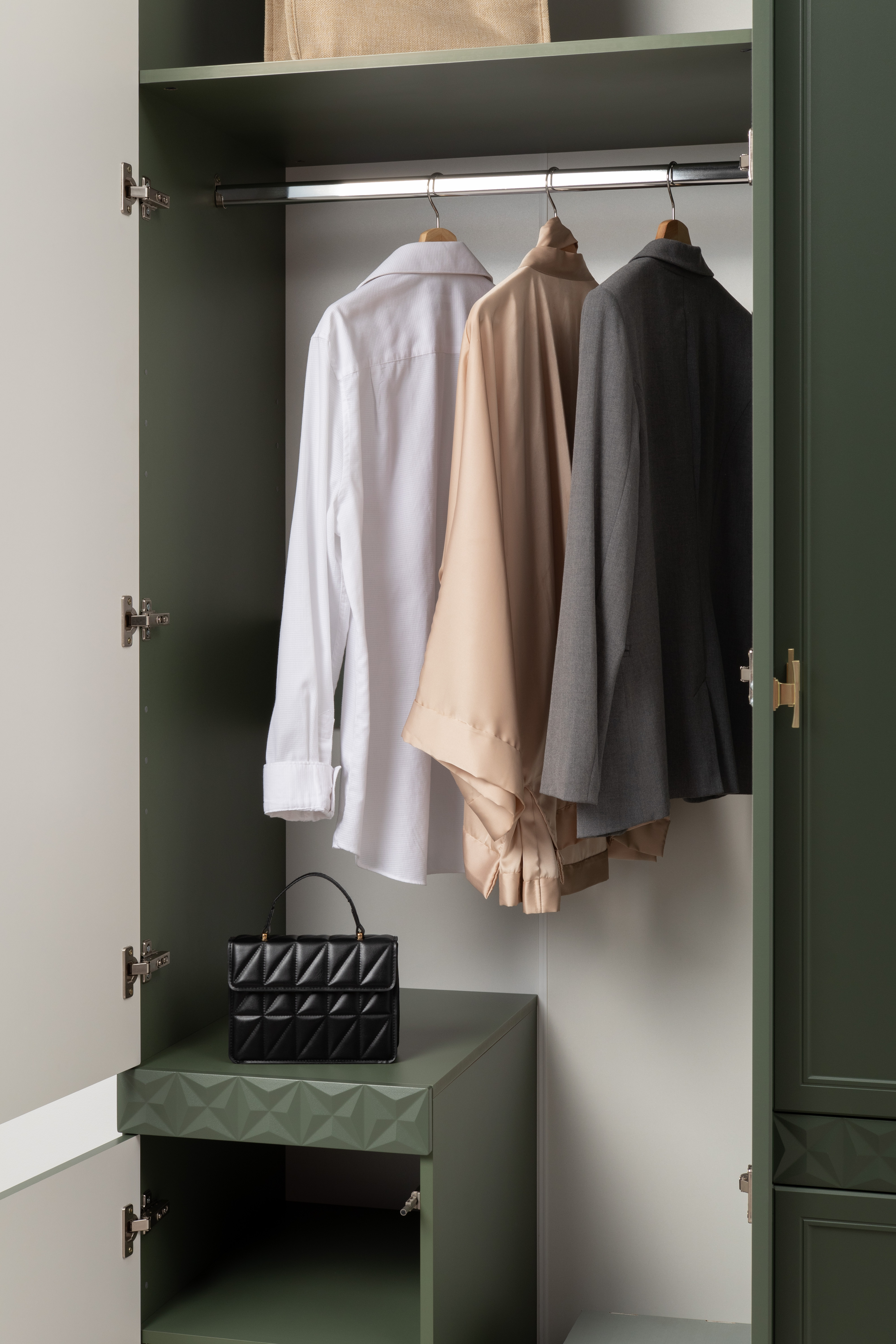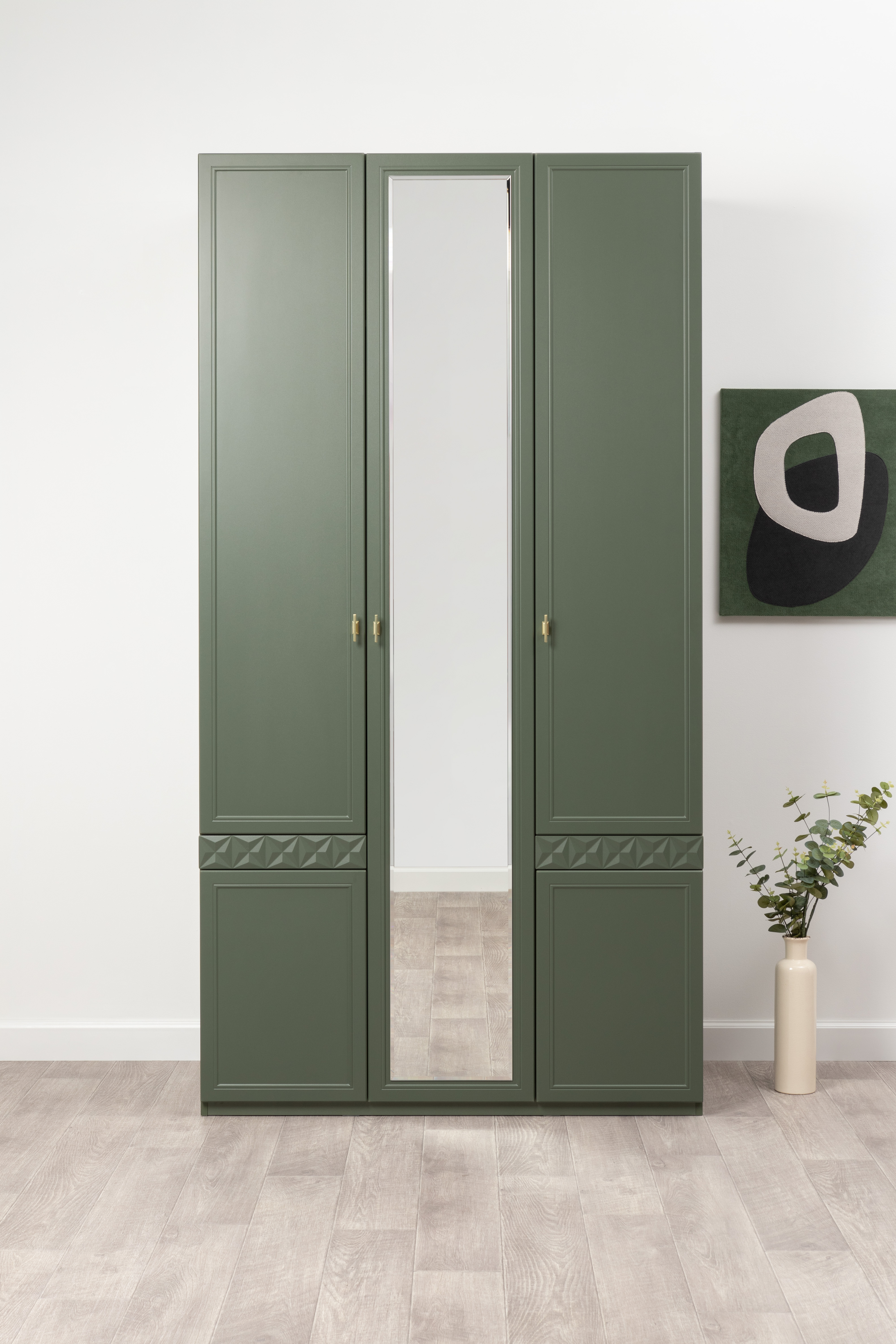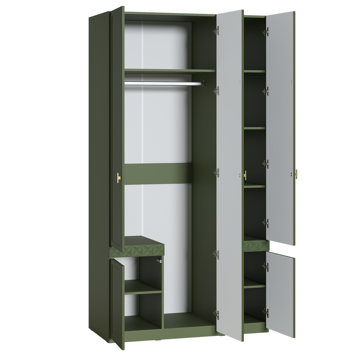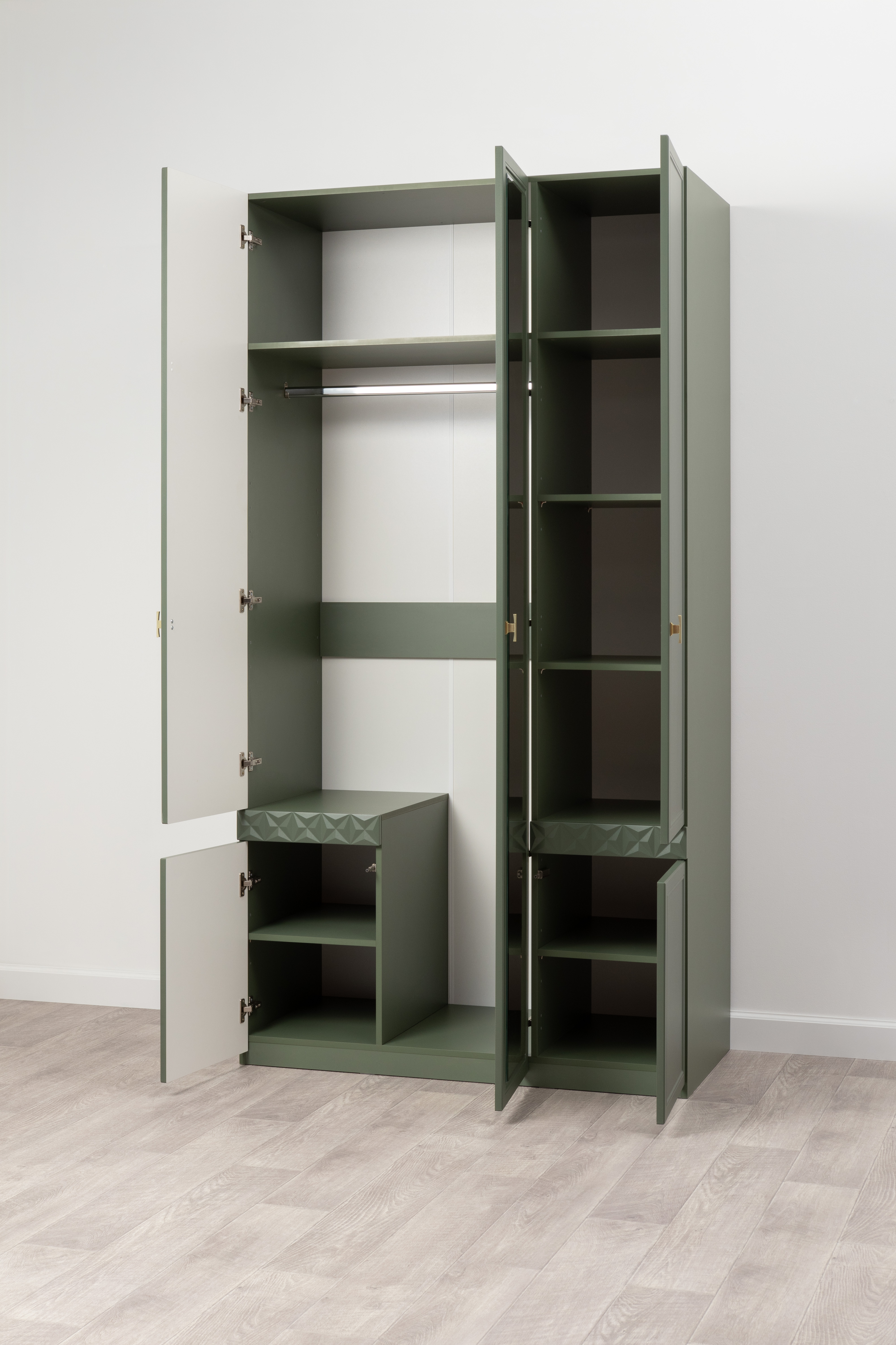 Шкаф для одежды Марион 16.340.03 дымчатый зеленый K521, олива шагрень AG 1050 ПВХ (собирается на любую сторону)