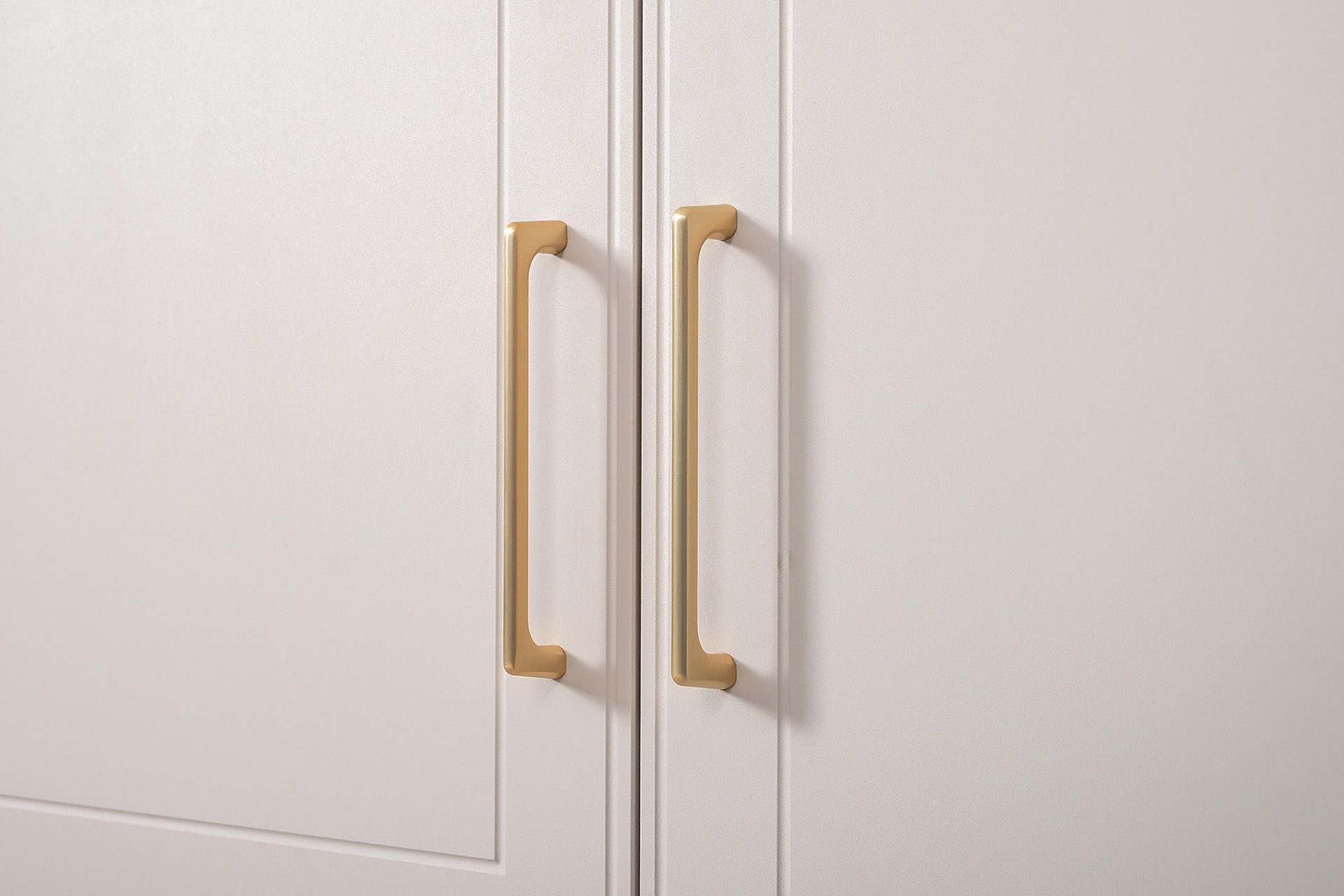 Петли с доводчиками, полное выдвижение ящиков, выдвижная штанга в шкафу для одежды и съемные полки делают использование максимально комфортным.