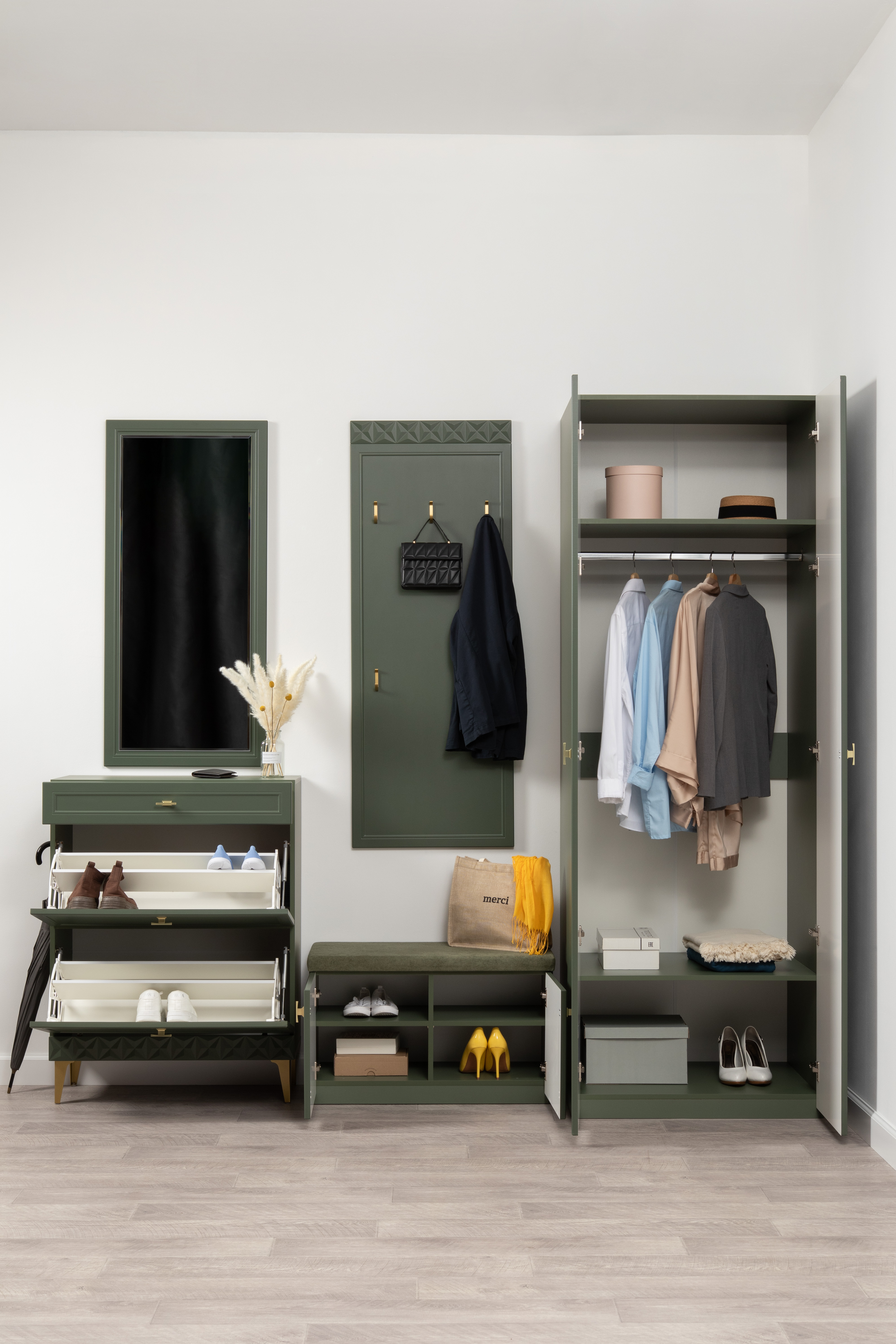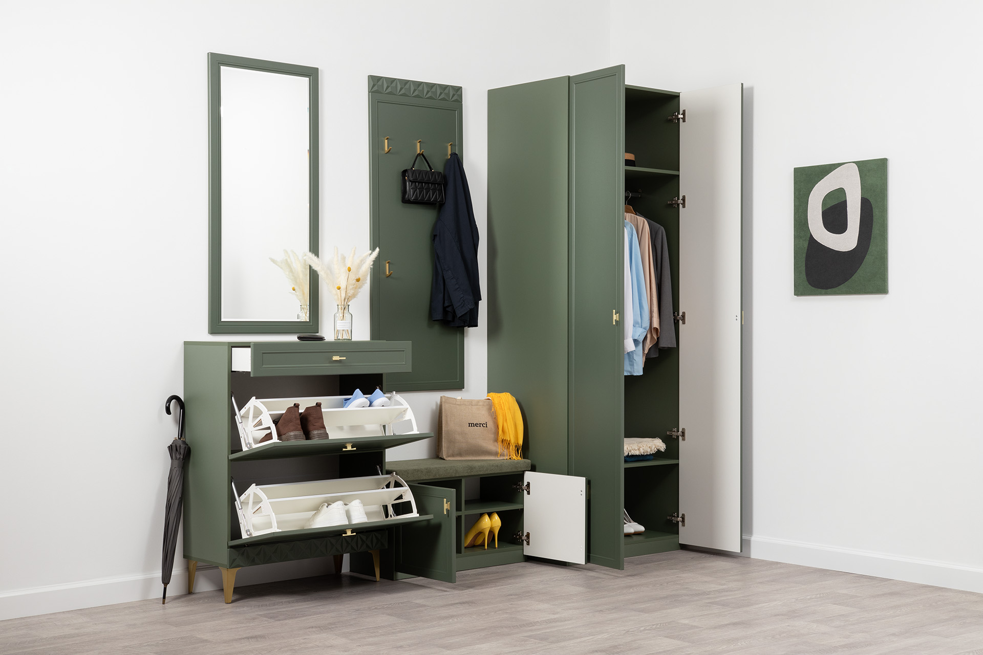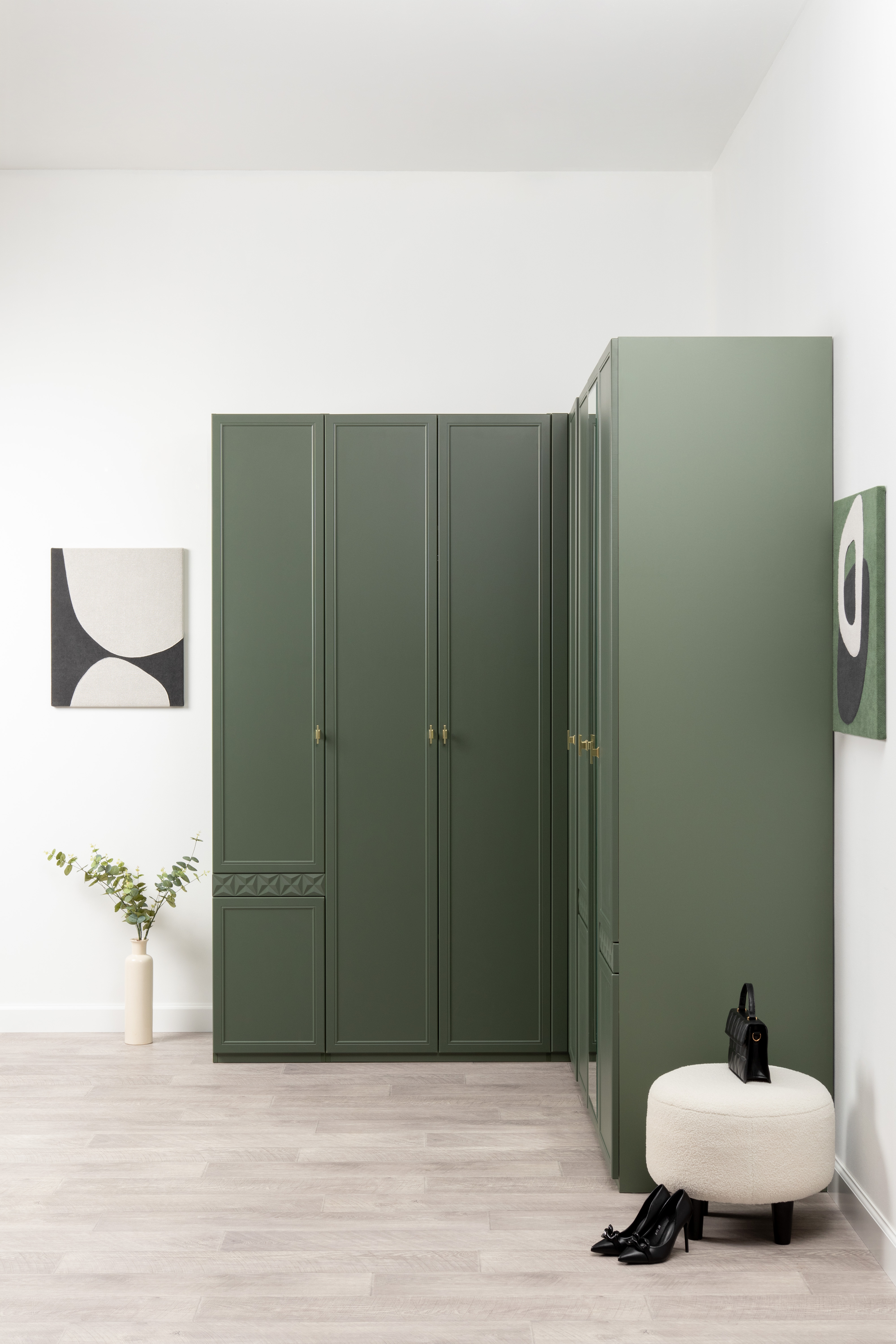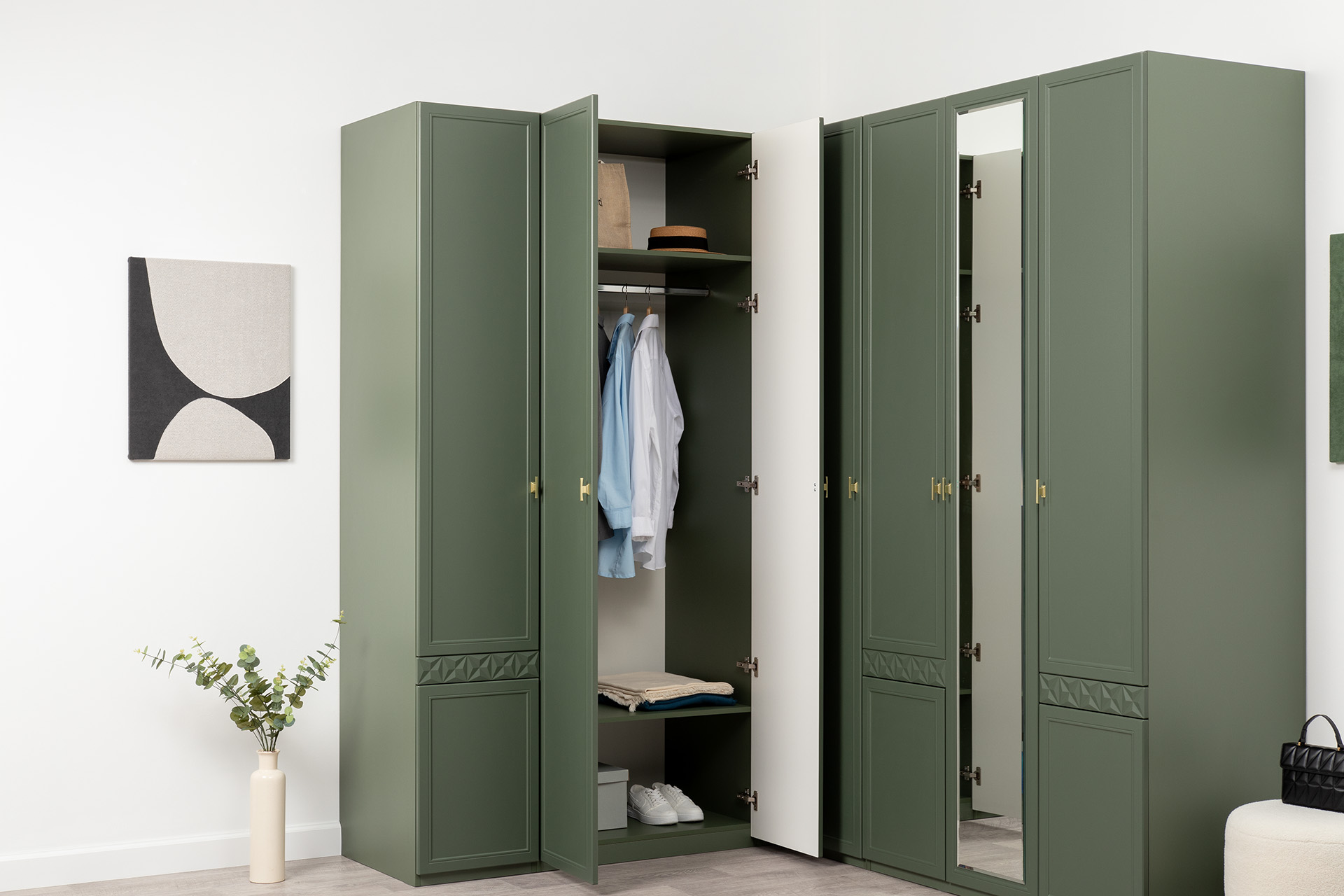 Шкаф двустворчатый Марион 16.340.02 дымчатый зеленый K521, олива шагрень AG 1050 ПВХ