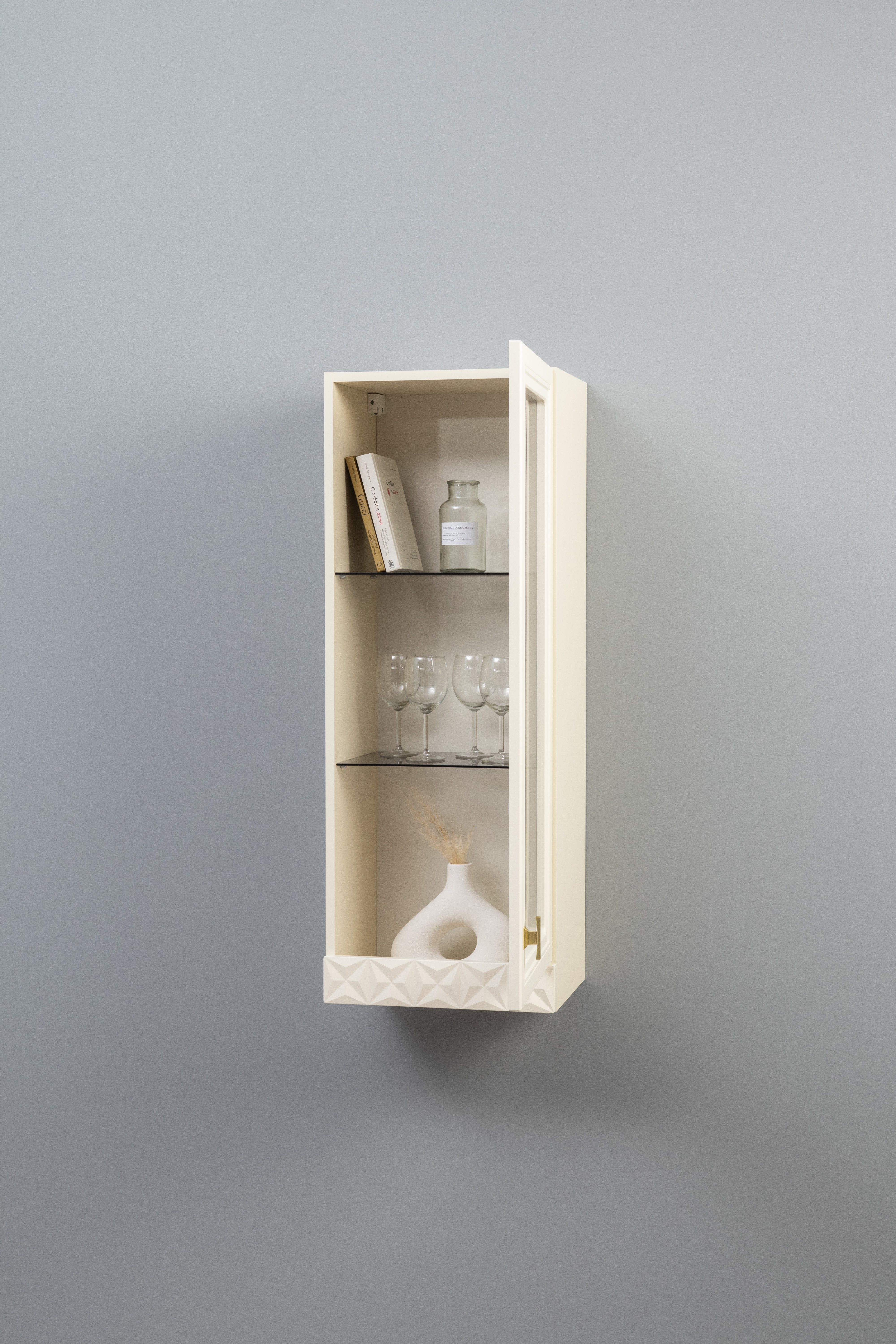 В коллекции представлены три типа витрин с тонированным закалённым стеклом, которые придают пространству лёгкость и свет. «Марион» — идеальное сочетание традиций и актуального дизайна в каждой детали.