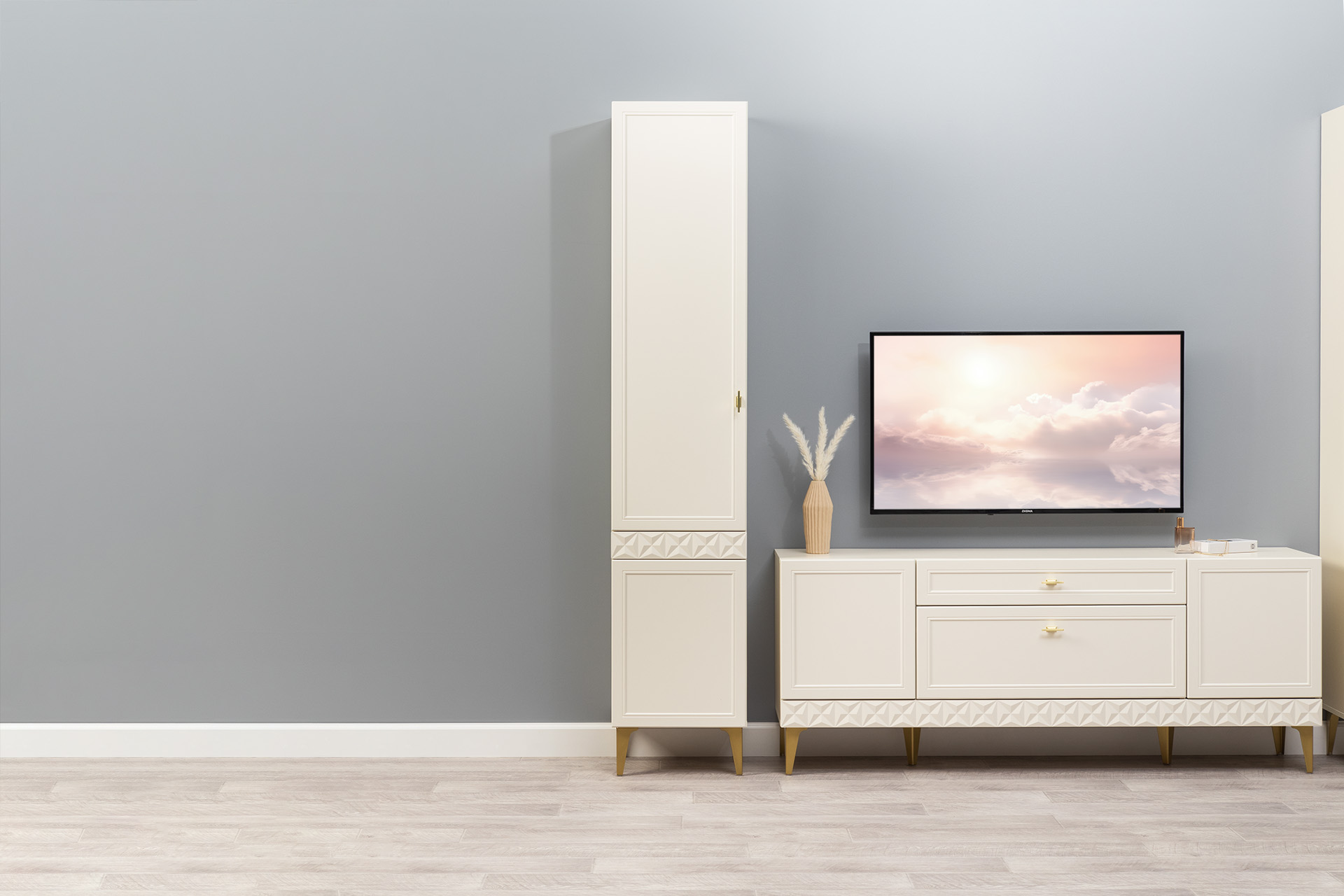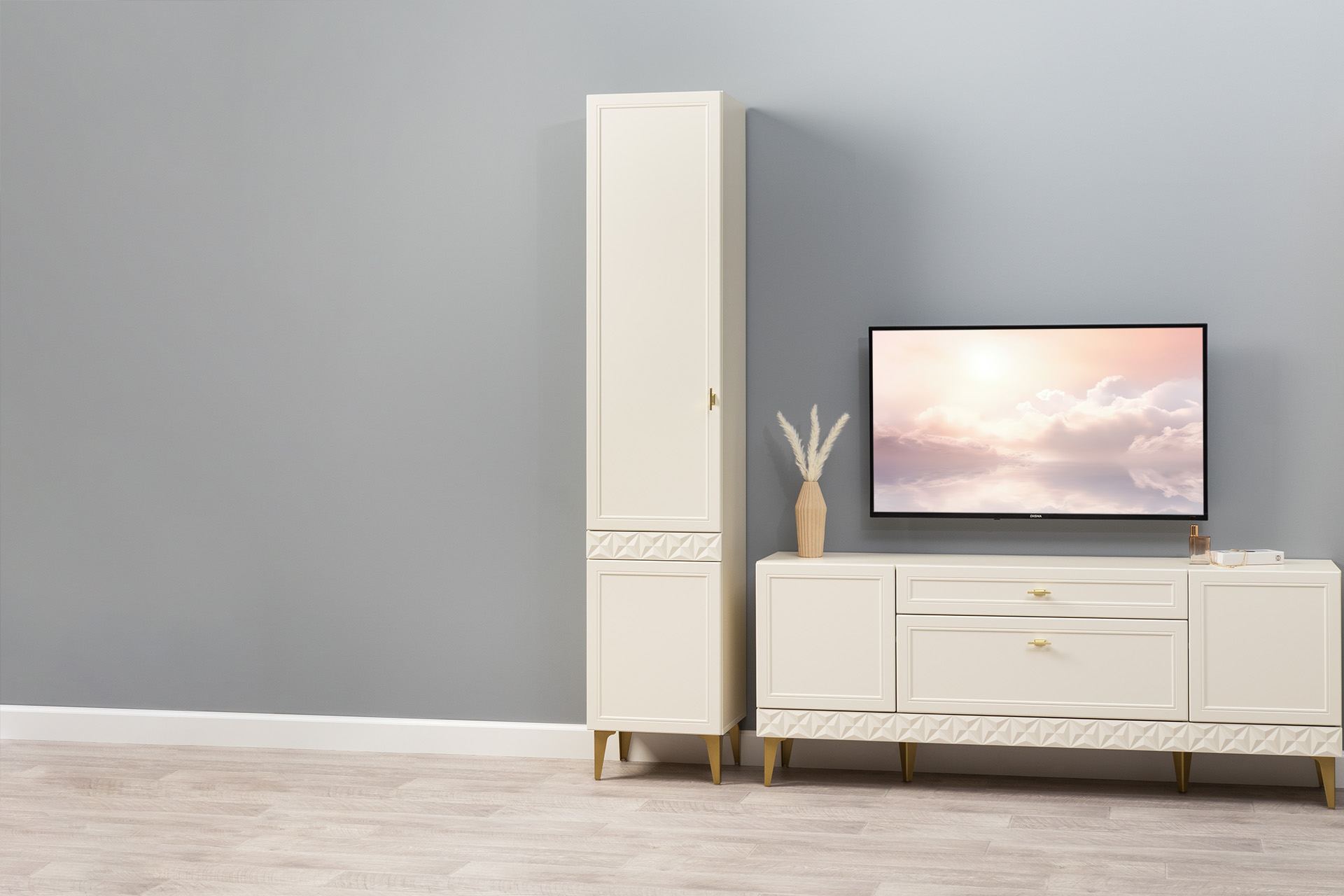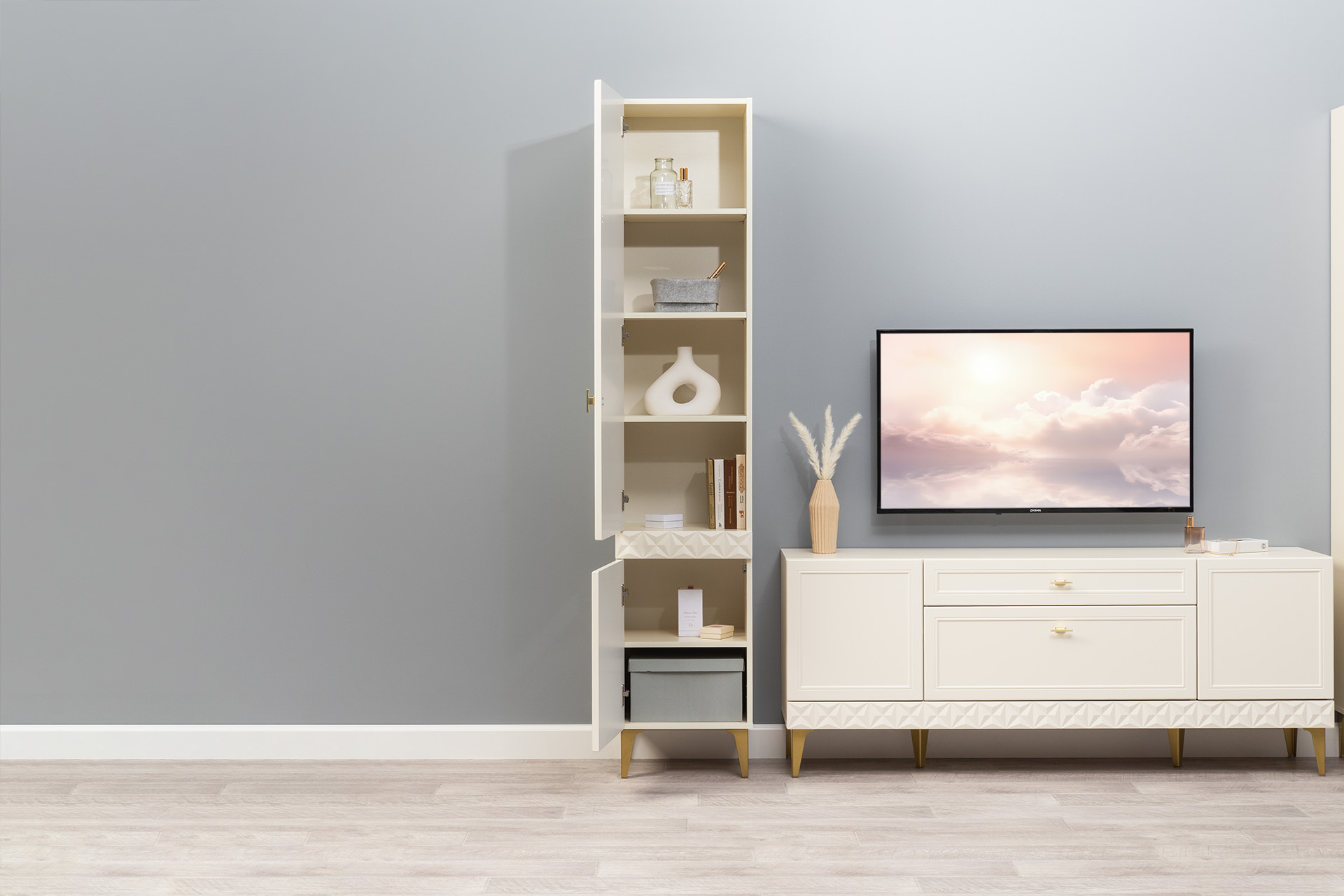 Шкаф-пенал Марион 16.333.01 слоновая кость С341 PE, слоновая кость 6898 ПВХ (собирается на любую сторону)