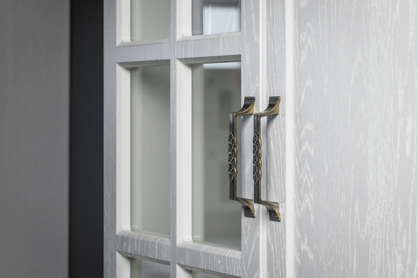 Шкаф-витрина в гостиную Ливерпуль белый, ясень ваниль ПВХ