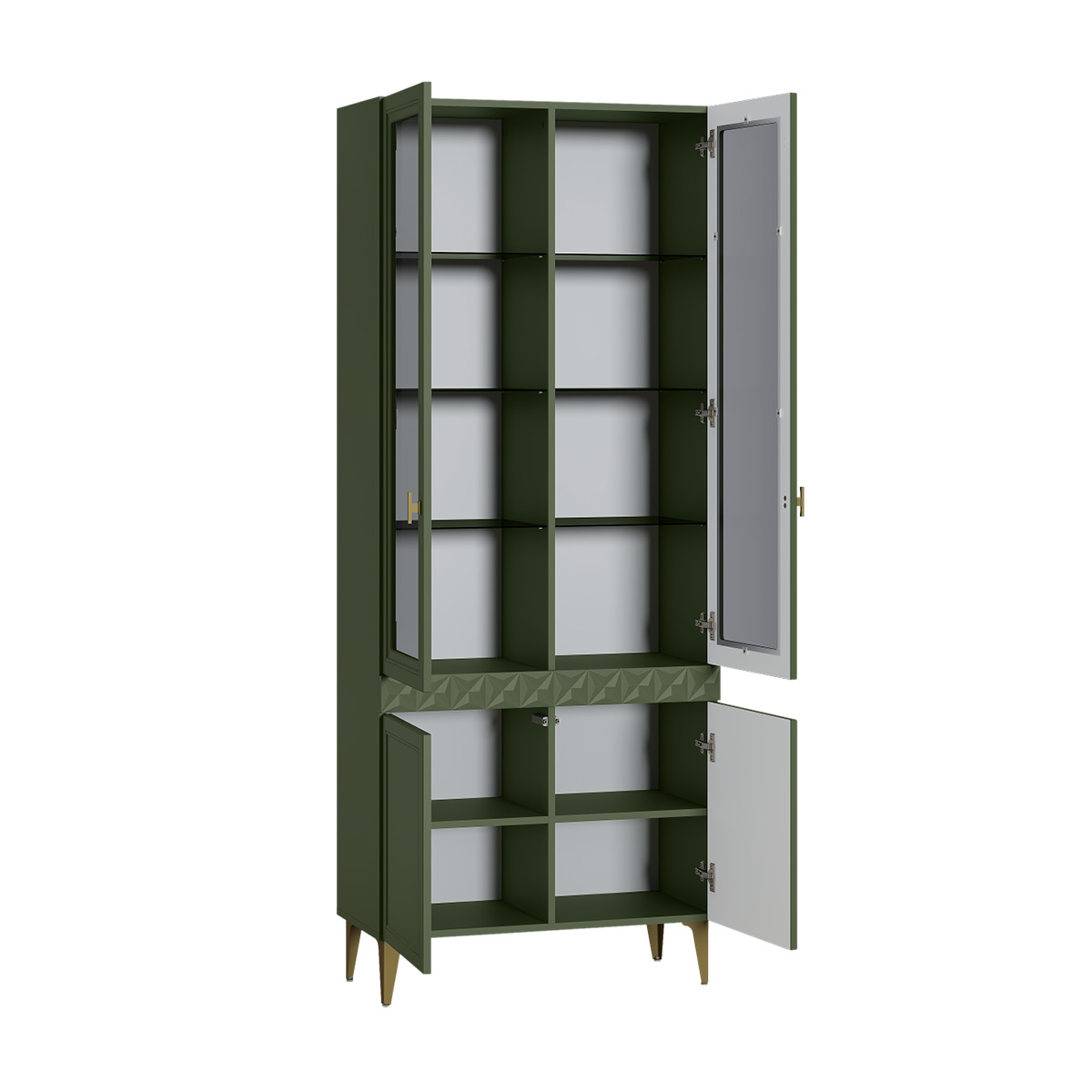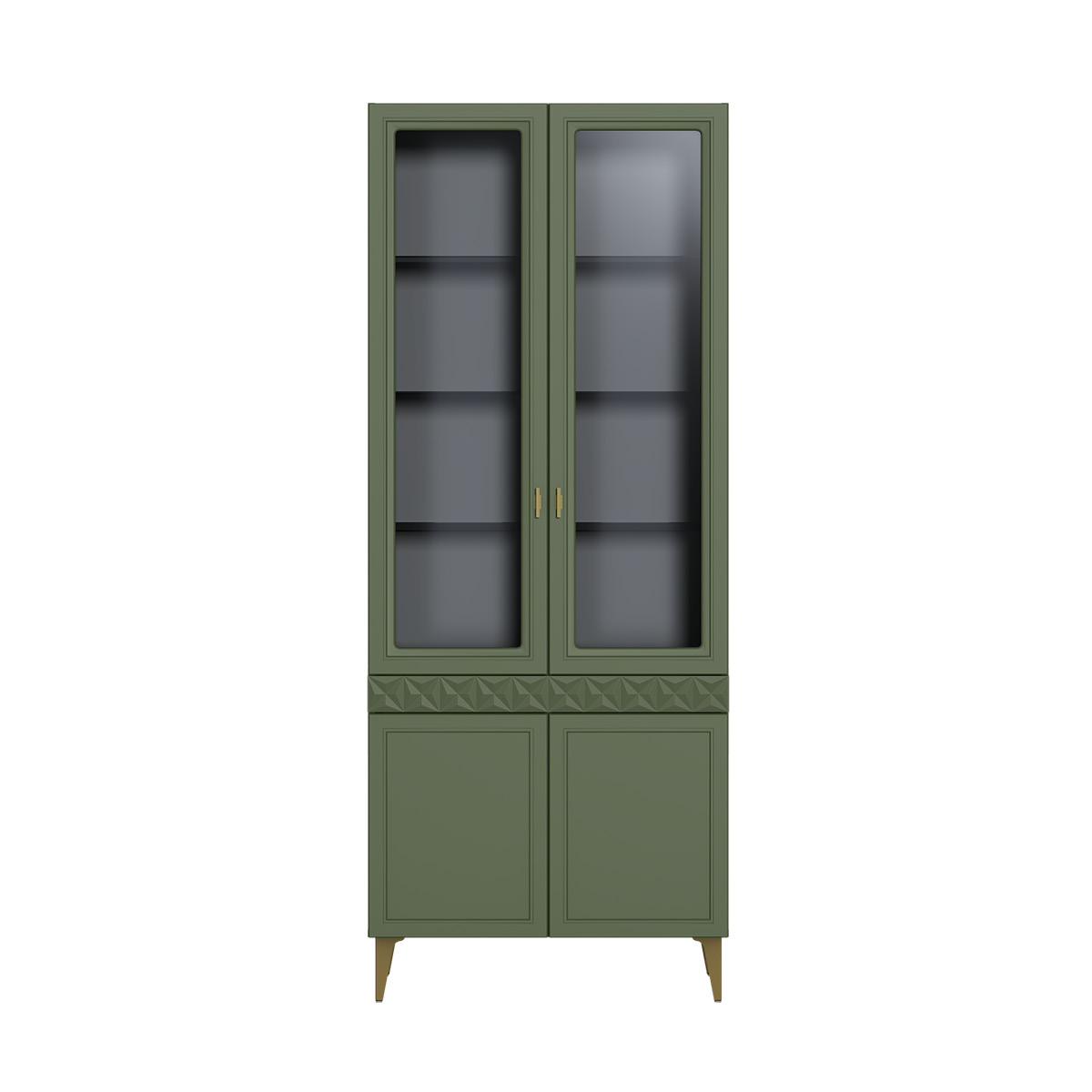 Шкаф-витрина Марион 16.397.02 дымчатый зеленый K521, олива шагрень AG 1050 ПВХ (собирается на любую сторону)