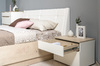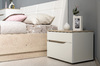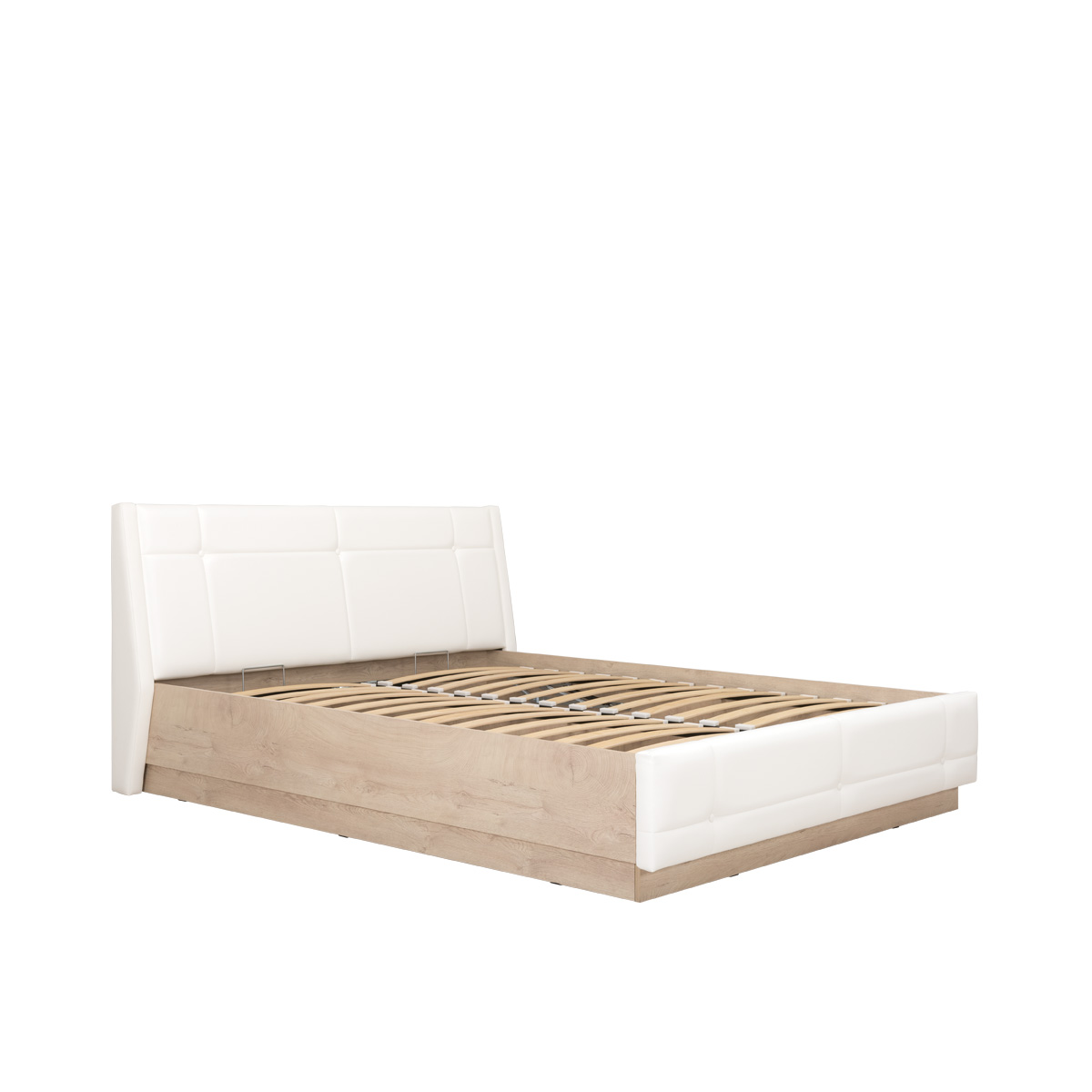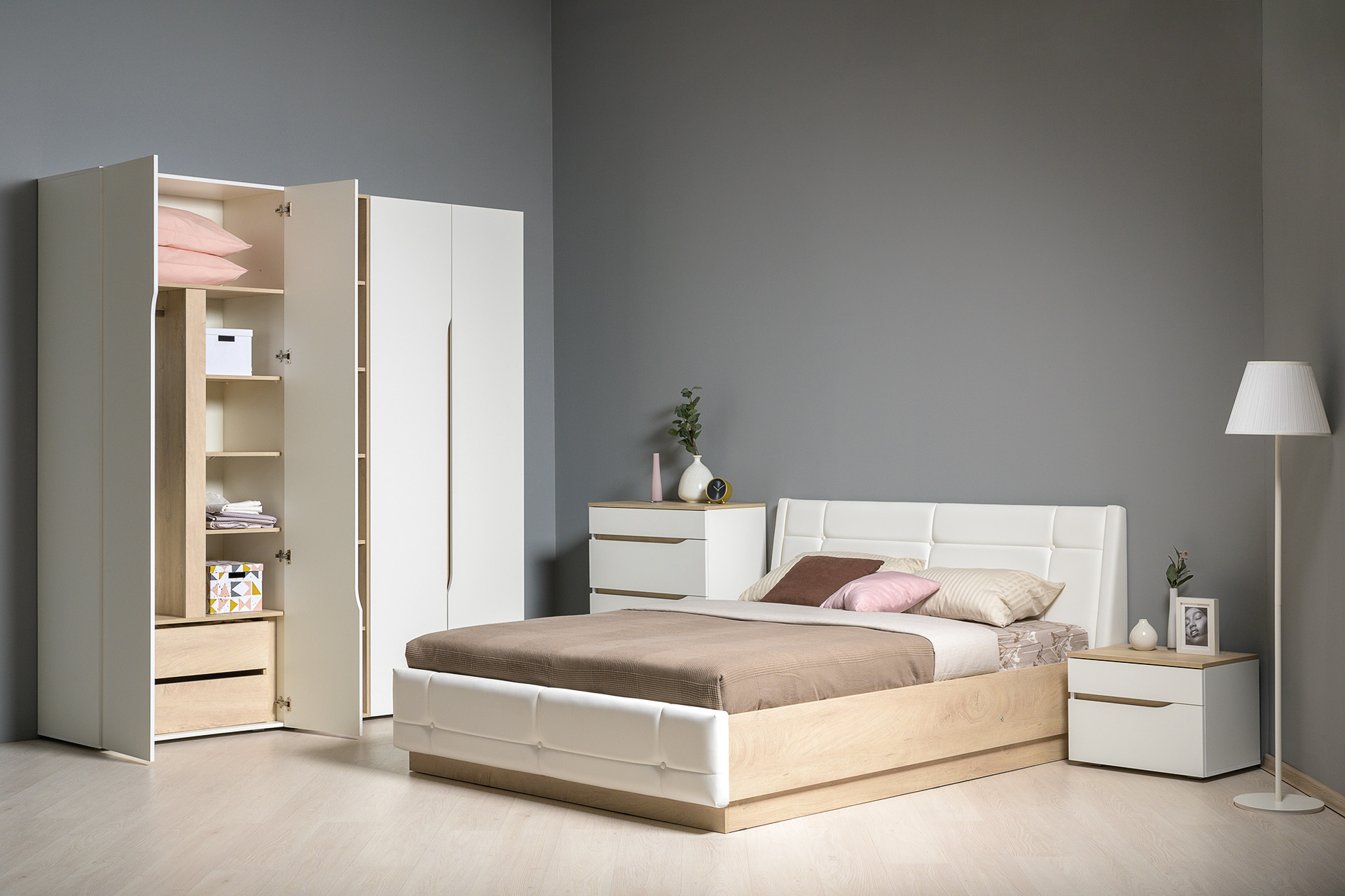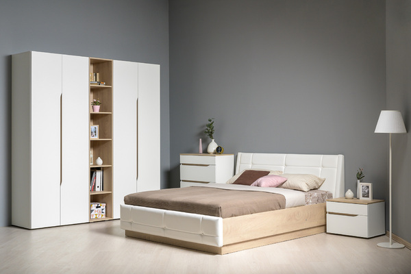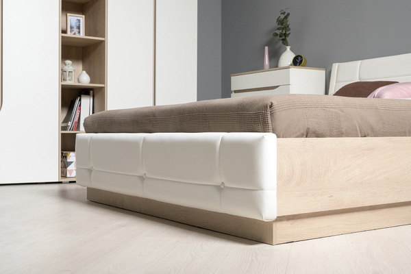 Мягкое изголовье кровати установлено с небольшим наклоном, что даёт возможность не только лежать, но и комфортно сидеть, как на диване.