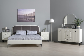Кровать Валенсия 11.36.02 с ортопедическим основанием белый РЕ шагрень, белая шагрень ПВХ, велюр Велутто 19