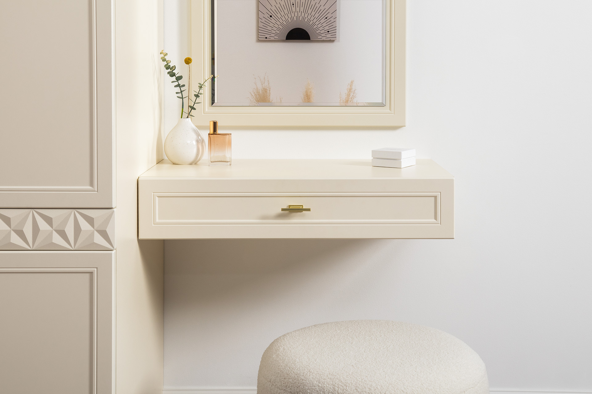 Тумба прикроватная Марион 16.14 слоновая кость С341 PE, слоновая кость 6898 ПВХ, белый PE шагрень