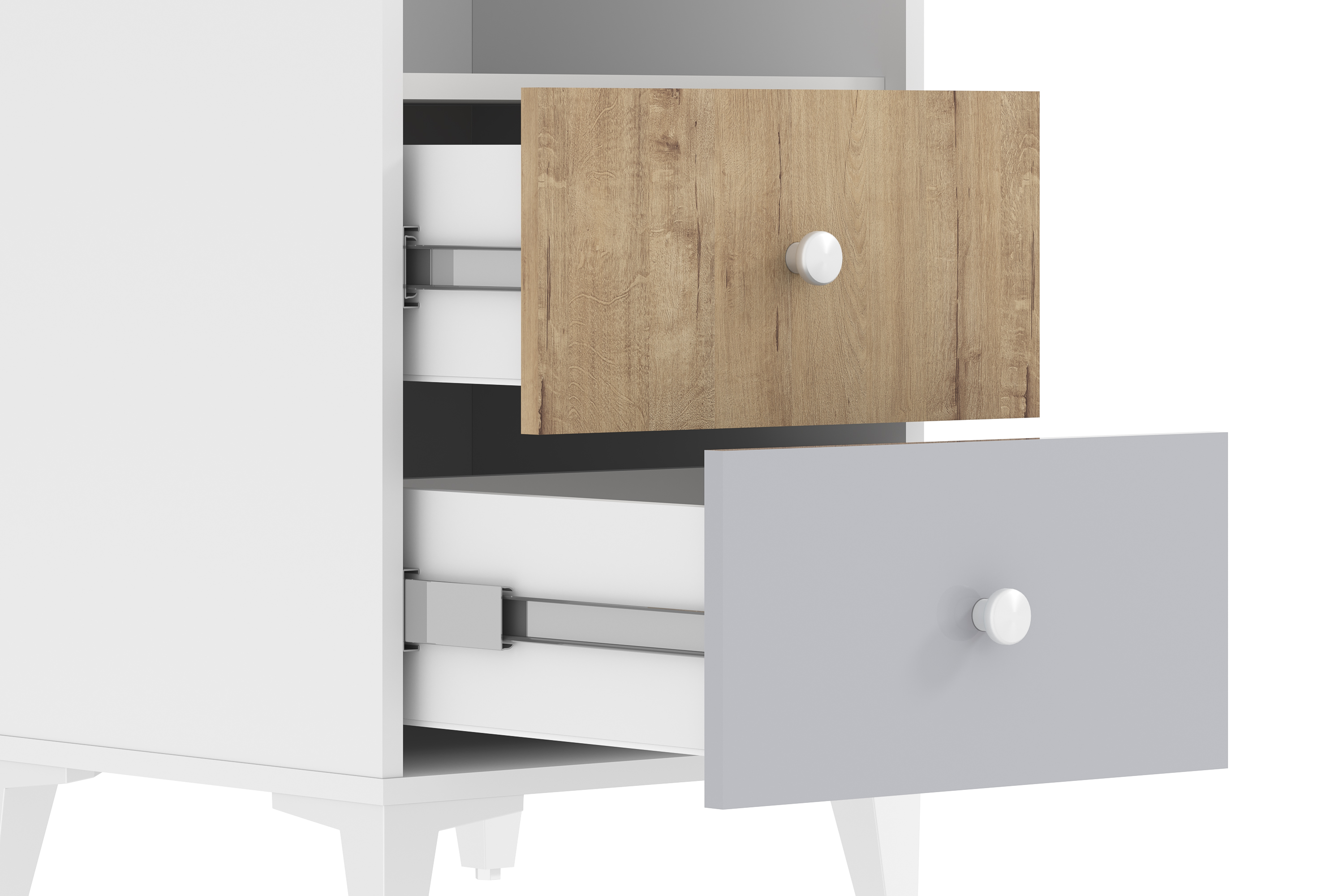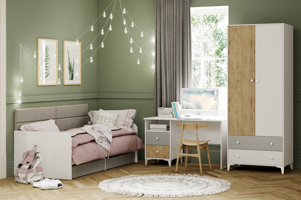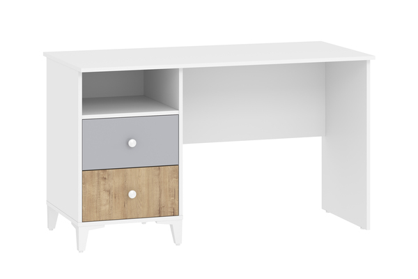 Одним из важнейших принципов развития ребенка является обустройство его рабочего места, где школьник сможет выполнять уроки, заниматься творчеством и любимым хобби. Письменный стол «Морти» с тумбой позволит оформить в спальне рабочий уголок в скандинавском стиле. Белый цвет столешницы хорошо гармонирует с контрастными ящиками. Данная модель дополнена небольшим модулем из пары выдвижных ящиков и открытой ниши. Вместительная полка под рабочей поверхностью прекрасно подходит для книг и тетрадей. Тумбу с ящиками возможно разместить как в левой, так и в правой части изделия в зависимости от предпочтений ребенка. Ящика с удобными ручками легко выдвигаются, предоставляя полный доступ к содержимому и позволяя быстро найти необходимый предмет.