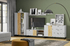 "БРУНО" - современный дизайн с характером. Цвет платиново-серого и золотого дуба подчеркнут контрастными элементами - стеклом в витринах и черными ручками, металлическими черными опорами. Модульная колекция, состоящая из отдельных элементов, призвана максимально продуктивно использовать пространство и придать ему стильный и современный вид. Контрастные текстуры — эффектное сочетание двух абсолютно разных цветов, которые при этом гармонично смотрятся вместе.