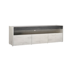 Тумба под ТВ в гостиную Петра 13.281 белый PE шагрень, милк софт ПВХ, бетон чикаго беж ПВХ