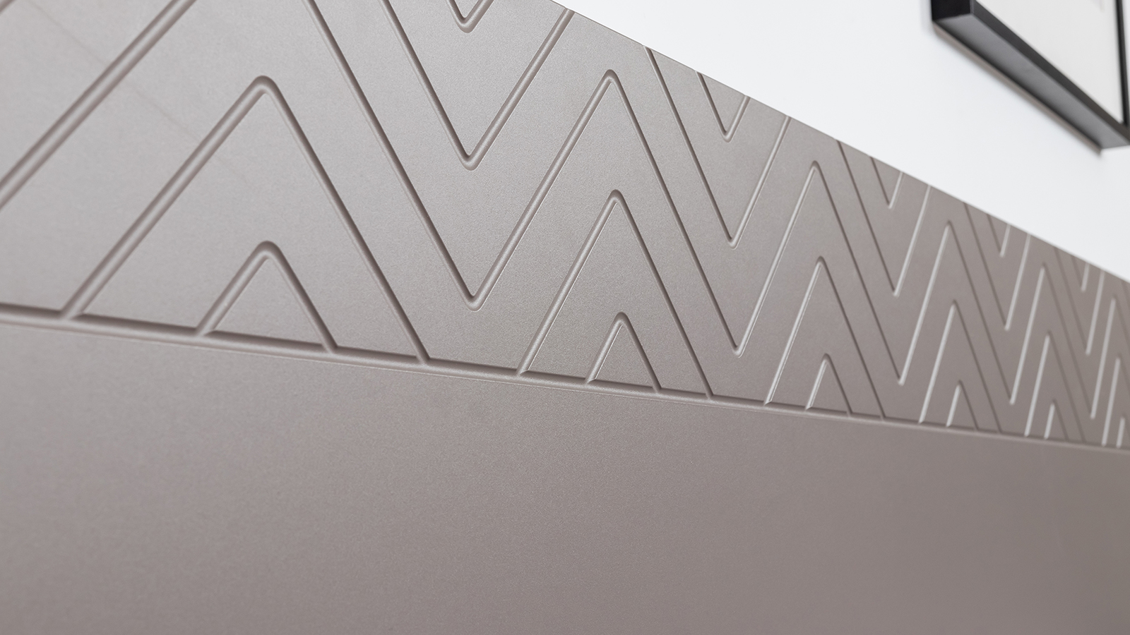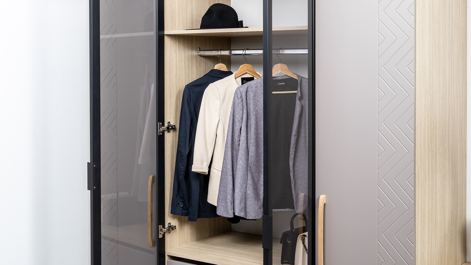 Фасады выполнены из МДФ с матовой поверхностью, изящная фрезеровка даёт визуальную лёгкость. Приглушённые натуральные цвета и чистые линии позволяют расслабиться и не фокусироваться на деталях интерьера. Лицевая фурнитура из натурального ясеня.